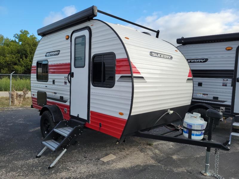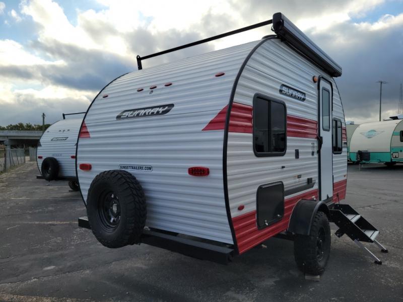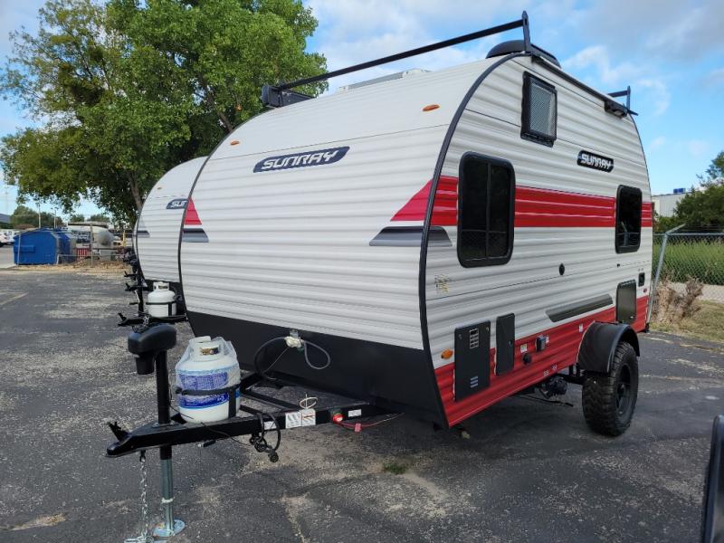 The Sunray travel trailer from Sunset Park RV is an investment that you'll be able to enjoy for many years to come! These compact trailers are effortless to tow, so you won't need fancy equipment to have fun at the campsite. The Sunray is built upon a powder-coated steel chassis, and it has a diamond plate rock guard to keep the front end protected from debris. You'll find radial tires, a spare tire with carrier, and .024" aluminum siding on each model. You'll be able to remain comfortable when staying indoors thanks to the A/C and furnace. Another way that your camping experience will be elevated is with the Confidence Package which comes with a 6” lift with off-road tires, black steel rims, a roof rack, and more!