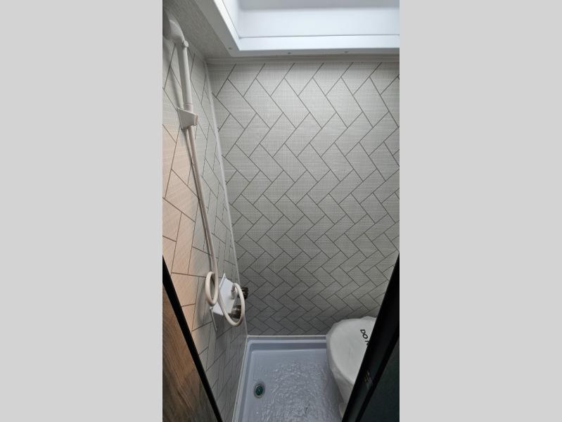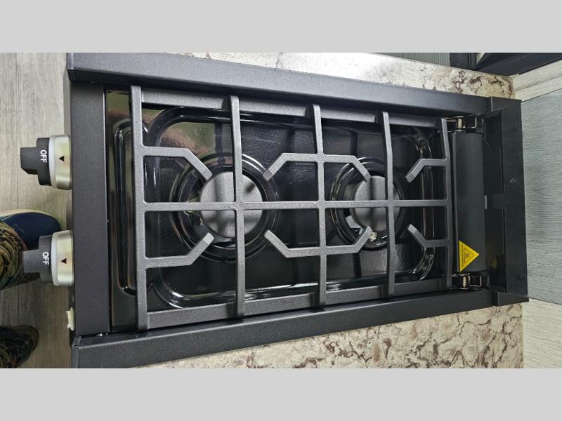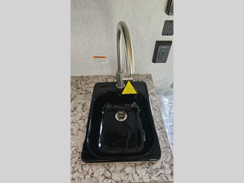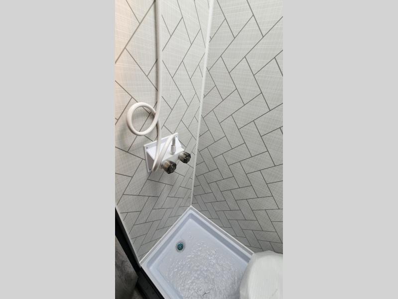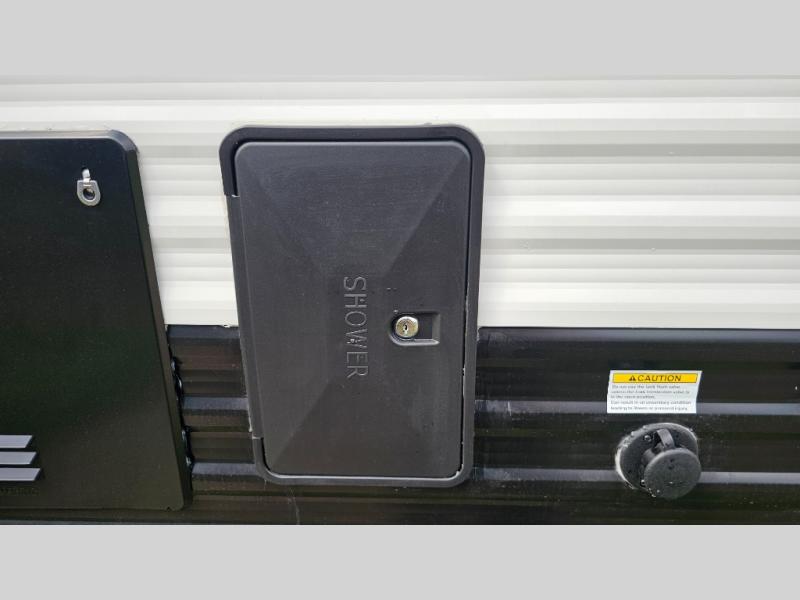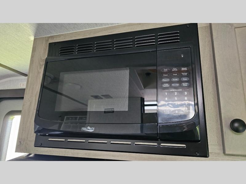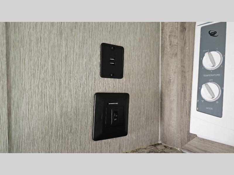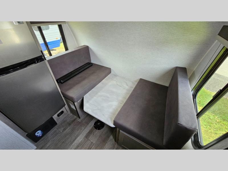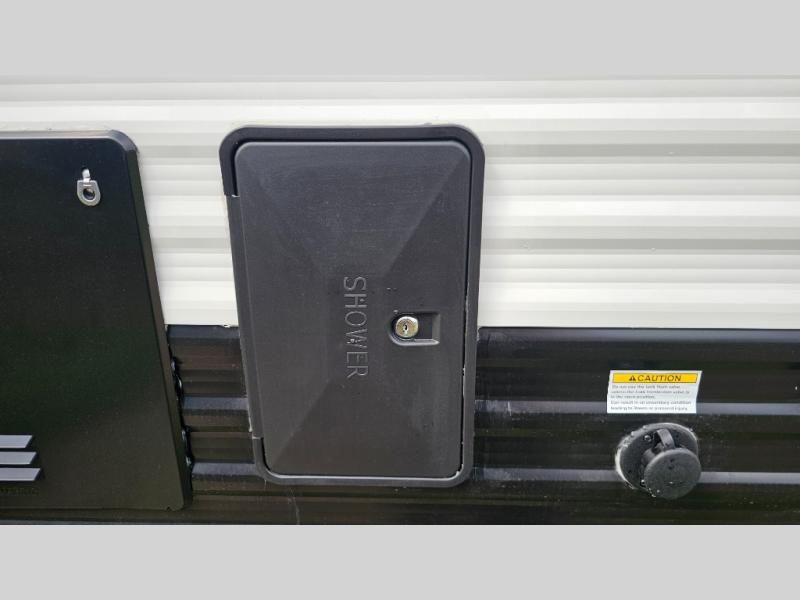 This Sunray travel trailer is the largest and most accommodating because it comes with a wet bath so that you can even take a shower in your trailer! There is a small kitchen on the interior that comes with a two-burner stove top, a refrigerator, and a microwave so that you can cook dinner without having to start a fire, and since it is indoors, you will be able to keep the bugs away while you prepare something delicious to eat. If you need to rinse off some gear, the outside shower will be especially useful, and if you need to charge your devices, use the USB ports. You will also find a Winegard HDTV antenna on this model. Add the available Classic option for 14" tires instead of the off-road version, color matching rims with Moon Caps, and Retro decor and Diner-Style countertops.