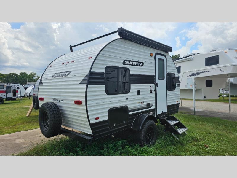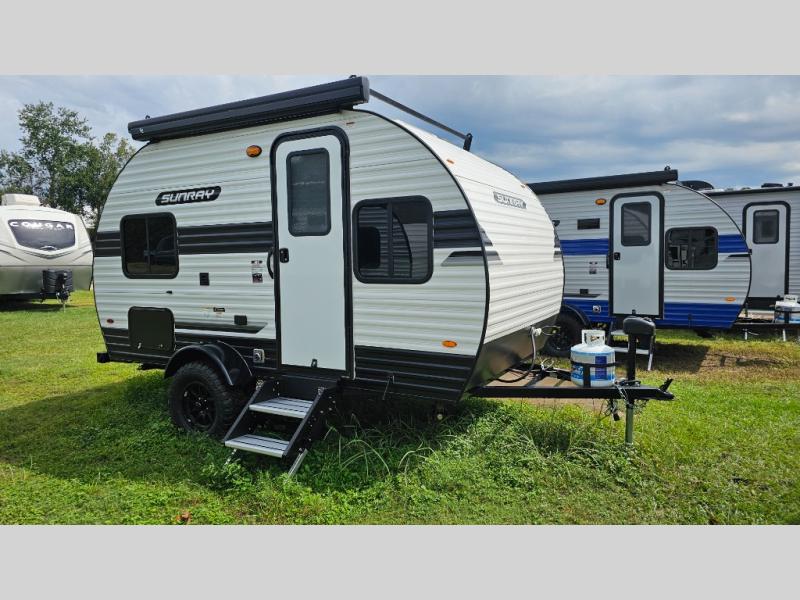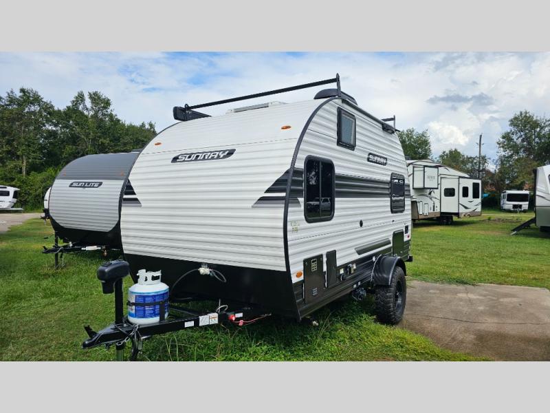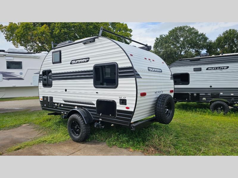 The Sunray travel trailer from Sunset Park RV is an investment that you'll be able to enjoy for many years to come! These compact trailers are effortless to tow, so you won't need fancy equipment to have fun at the campsite. The Sunray is built upon a powder-coated steel chassis, and it has a diamond plate rock guard to keep the front end protected from debris. You'll find radial tires, a spare tire with carrier, and .024" aluminum siding on each model. You'll be able to remain comfortable when staying indoors thanks to the A/C and furnace. Another way that your camping experience will be elevated is with the Confidence Package which comes with a 6” lift with off-road tires, black steel rims, a roof rack, and more!