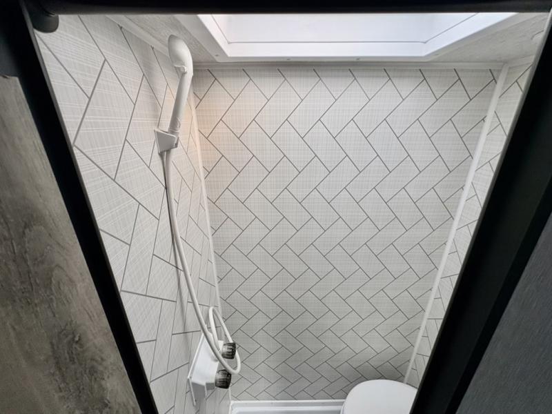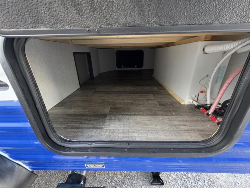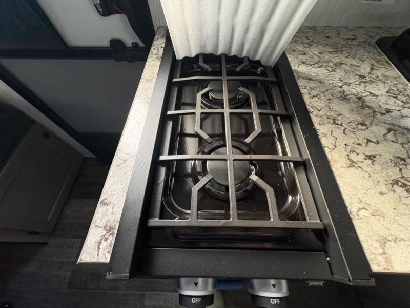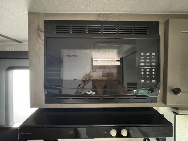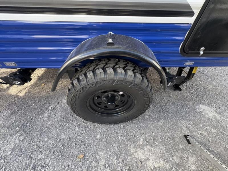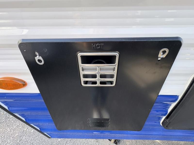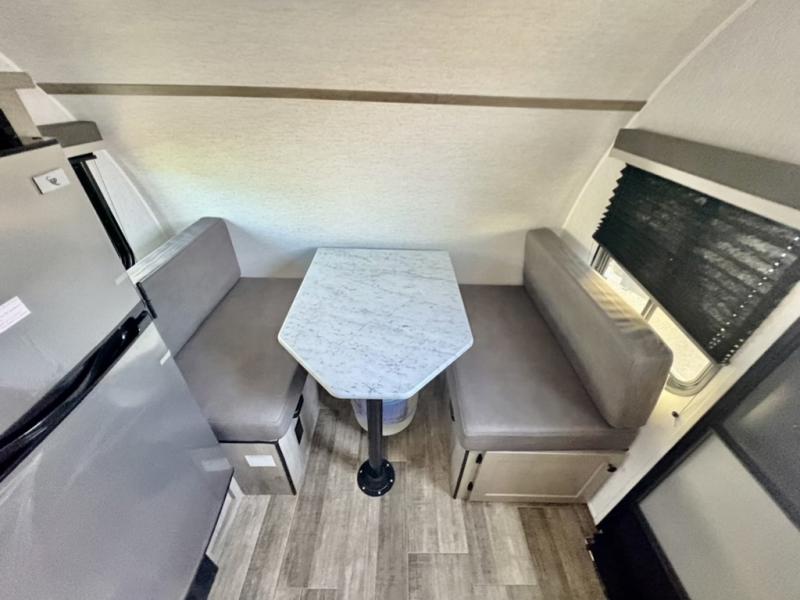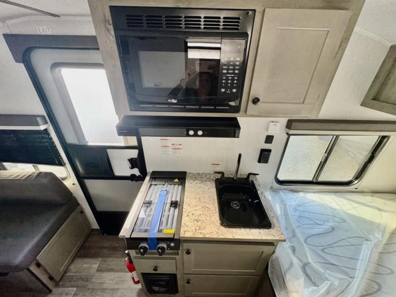 This Sunray travel trailer is the largest and most accommodating because it comes with a wet bath so that you can even take a shower in your trailer! There is a small kitchen on the interior that comes with a two-burner stove top, a refrigerator, and a microwave so that you can cook dinner without having to start a fire, and since it is indoors, you will be able to keep the bugs away while you prepare something delicious to eat. If you need to rinse off some gear, the outside shower will be especially useful, and if you need to charge your devices, use the USB ports. You will also find a Winegard HDTV antenna on this model. Add the available Classic option for 14" tires instead of the off-road version, color matching rims with Moon Caps, and Retro decor and Diner-Style countertops.