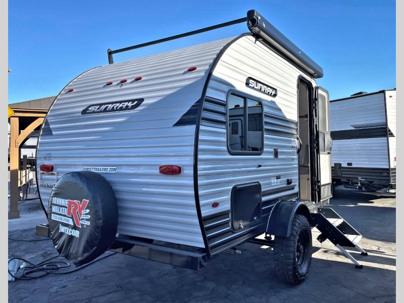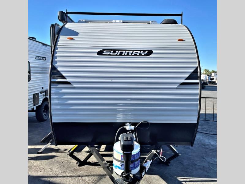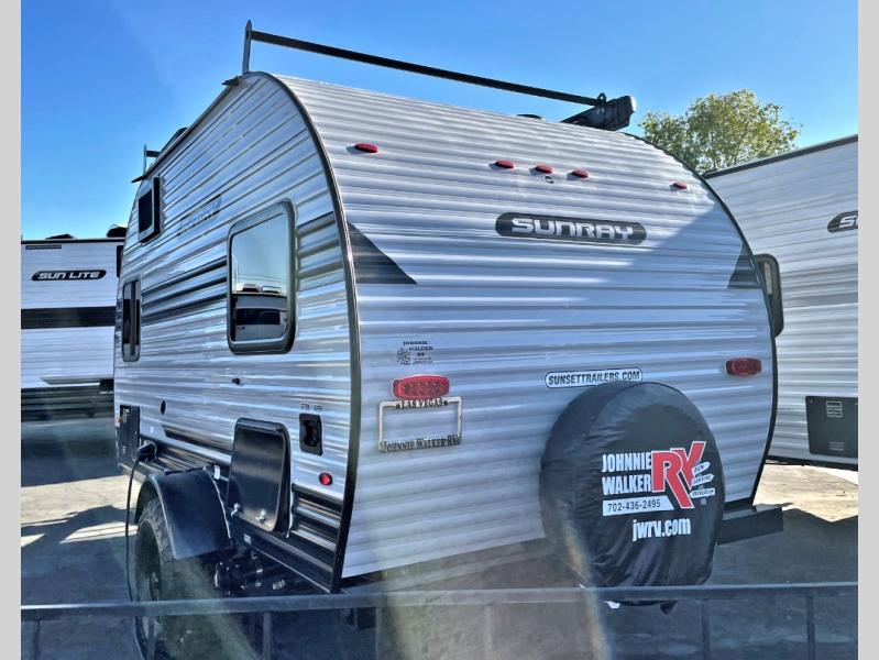 The Sunray travel trailer from Sunset Park RV is an investment that you'll be able to enjoy for many years to come! These compact trailers are effortless to tow, so you won't need fancy equipment to have fun at the campsite. The Sunray is built upon a powder-coated steel chassis, and it has a diamond plate rock guard to keep the front end protected from debris. You'll find radial tires, a spare tire with carrier, and .024" aluminum siding on each model. You'll be able to remain comfortable when staying indoors thanks to the A/C and furnace. Another way that your camping experience will be elevated is with the Confidence Package which comes with a 6” lift with off-road tires, black steel rims, a roof rack, and more!