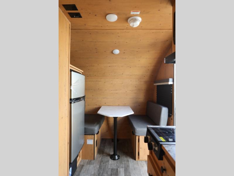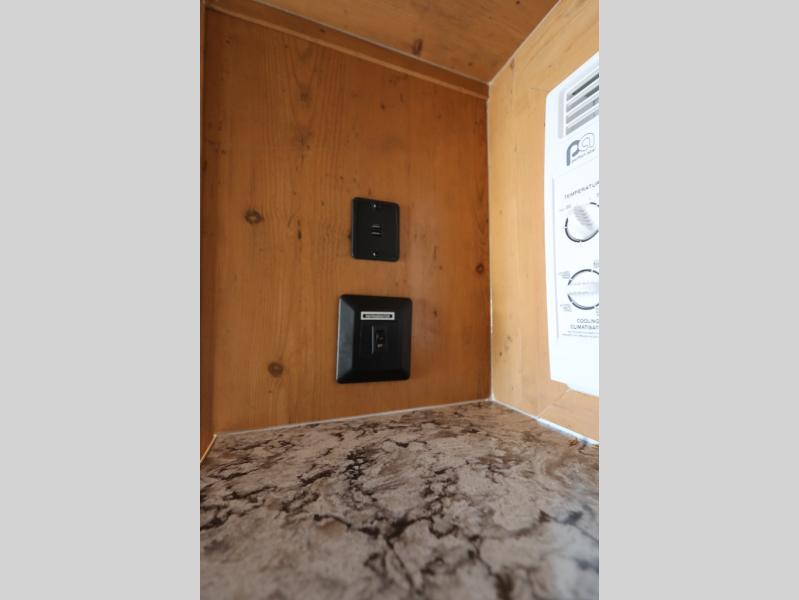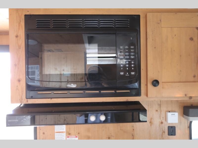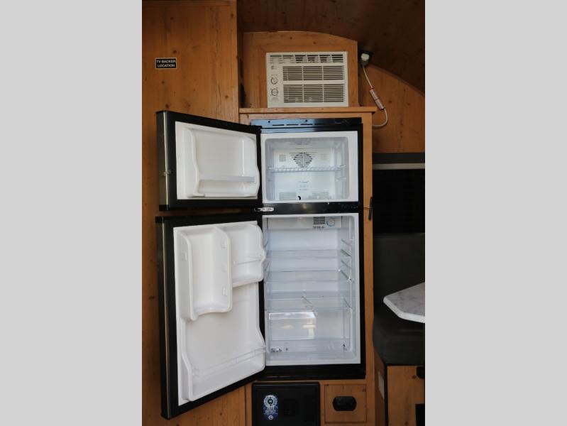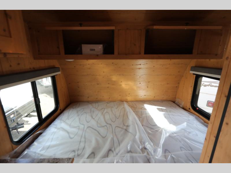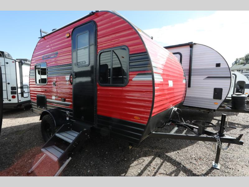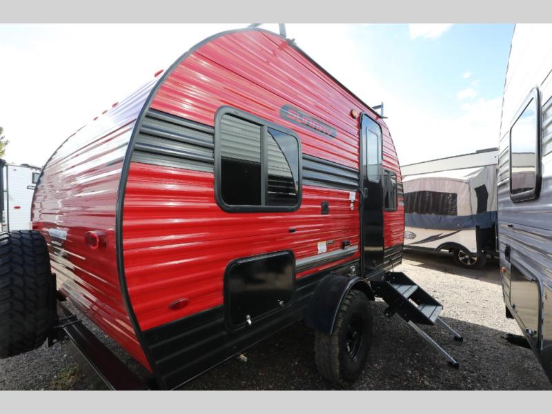 This Sunray travel trailer is the largest and most accommodating because it comes with a wet bath so that you can even take a shower in your trailer! There is a small kitchen on the interior that comes with a two-burner stove top, a refrigerator, and a microwave so that you can cook dinner without having to start a fire, and since it is indoors, you will be able to keep the bugs away while you prepare something delicious to eat. If you need to rinse off some gear, the outside shower will be especially useful, and if you need to charge your devices, use the USB ports. You will also find a Winegard HDTV antenna on this model. Add the available Classic option for 14" tires instead of the off-road version, color matching rims with Moon Caps, and Retro decor and Diner-Style countertops.