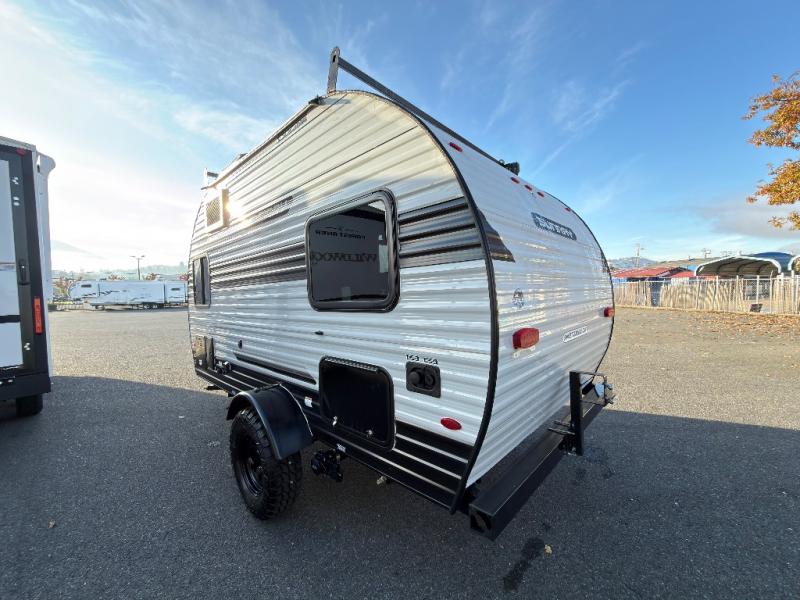 This Sunray travel trailer is the largest and most accommodating because it comes with a wet bath so that you can even take a shower in your trailer! There is a small kitchen on the interior that comes with a two-burner stove top, a refrigerator, and a microwave so that you can cook dinner without having to start a fire, and since it is indoors, you will be able to keep the bugs away while you prepare something delicious to eat. If you need to rinse off some gear, the outside shower will be especially useful, and if you need to charge your devices, use the USB ports. You will also find a Winegard HDTV antenna on this model. Add the available Classic option for 14" tires instead of the off-road version, color matching rims with Moon Caps, and Retro decor and Diner-Style countertops.