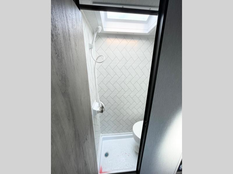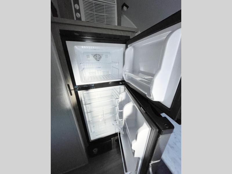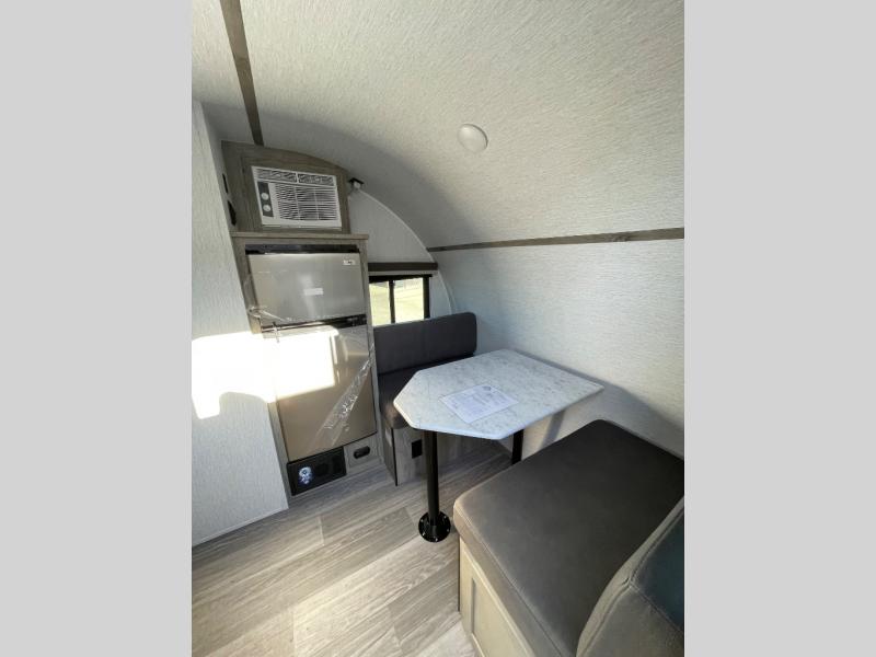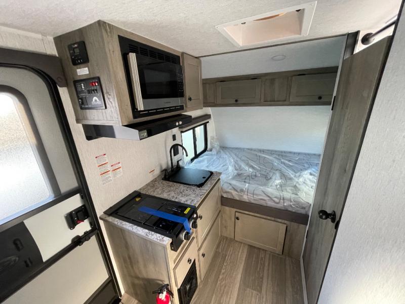 This Sunray travel trailer is the largest and most accommodating because it comes with a wet bath so that you can even take a shower in your trailer! There is a small kitchen on the interior that comes with a two-burner stove top, a refrigerator, and a microwave so that you can cook dinner without having to start a fire, and since it is indoors, you will be able to keep the bugs away while you prepare something delicious to eat. If you need to rinse off some gear, the outside shower will be especially useful, and if you need to charge your devices, use the USB ports. You will also find a Winegard HDTV antenna on this model. Add the available Classic option for 14" tires instead of the off-road version, color matching rims with Moon Caps, and Retro decor and Diner-Style countertops.