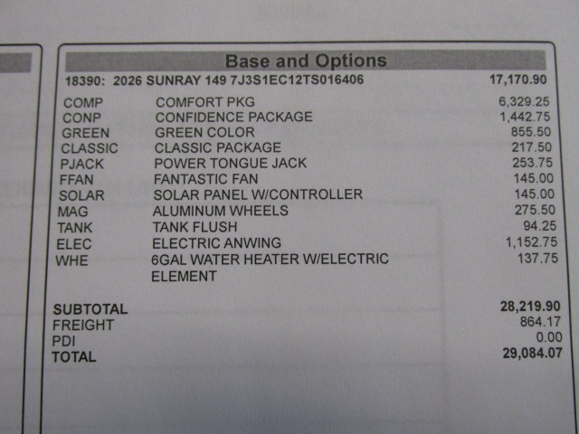 The Sunray travel trailer from Sunset Park RV is an investment that you'll be able to enjoy for many years to come! These compact trailers are effortless to tow, so you won't need fancy equipment to have fun at the campsite. The Sunray is built upon a powder-coated steel chassis, and it has a one-piece PVC roof membrane to keep the RV protected. You'll find radial tires, a spare tire with carrier where available, and .024" aluminum siding on each model. You'll be able to remain comfortable when staying indoors thanks to the A/C and furnace. Another way that your camping experience will be elevated is with the Confidence Package which comes with a 100 W solar kit w/ controller installed, a roof rack, and more!