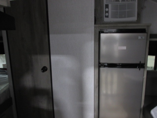 This Sunray travel trailer is the largest and most accommodating because it comes with a wet bath so that you can even take a shower in your trailer! There is a small kitchen on the interior that comes with a two-burner stove top, a refrigerator, and a microwave so that you can cook dinner without having to start a fire, and since it is indoors, you will be able to keep the bugs away while you prepare something delicious to eat. If you need to rinse off some gear, the outside shower will be especially useful, and if you need to charge your devices, use the USB ports. You will also find a Winegard HDTV antenna on this model. Add the available Classic option for 14" tires instead of the off-road version, color matching rims with Moon Caps, and Retro decor and Diner-Style countertops.