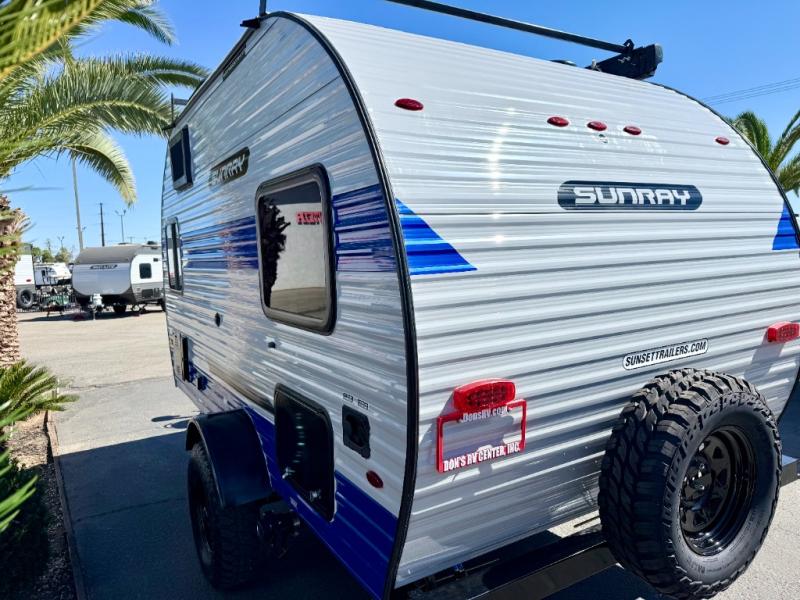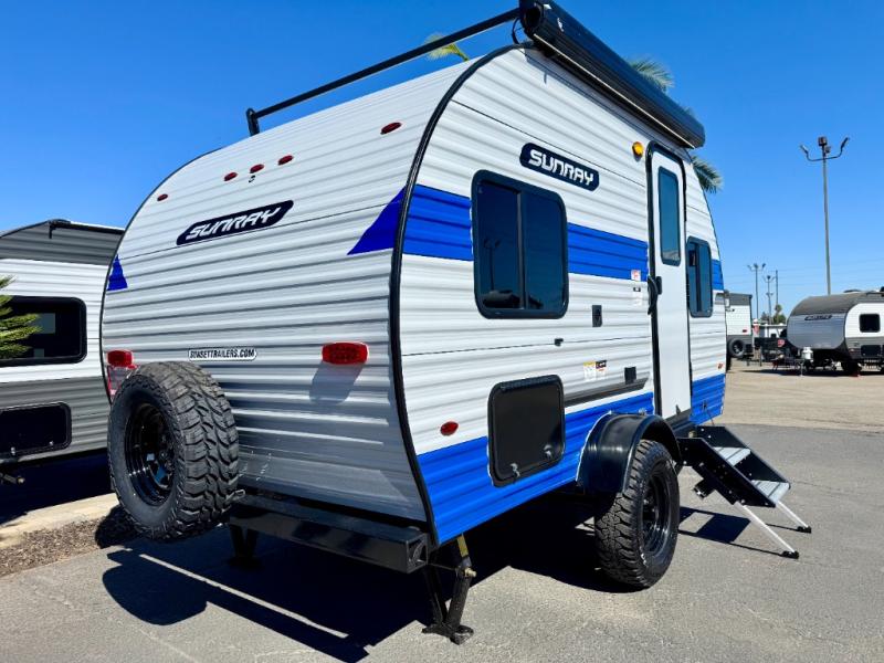 The Sunray travel trailer from Sunset Park RV is an investment that you'll be able to enjoy for many years to come! These compact trailers are effortless to tow, so you won't need fancy equipment to have fun at the campsite. The Sunray is built upon a powder-coated steel chassis, and it has a diamond plate rock guard to keep the front end protected from debris. You'll find radial tires, a spare tire with carrier, and .024" aluminum siding on each model. You'll be able to remain comfortable when staying indoors thanks to the A/C and furnace. Another way that your camping experience will be elevated is with the Confidence Package which comes with a 6” lift with off-road tires, black steel rims, a roof rack, and more!