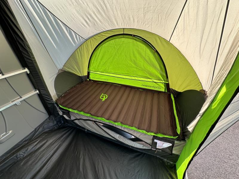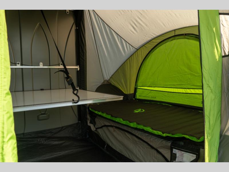 The 2025 SylvanSport GO All Out is a highly versatile and innovative pop-up camper known for its lightweight design, multifunctionality, and durability. It weighs just 840 lbs, making it easy to tow with most vehicles. The camper features a flexible interior that can accommodate up to four people with included Cloud Layer air mattresses and a spacious tent setup. Additional amenities include the GOzeebo tent/screen room, Dine O Max camp kitchen, solar kit, and ample storage options.