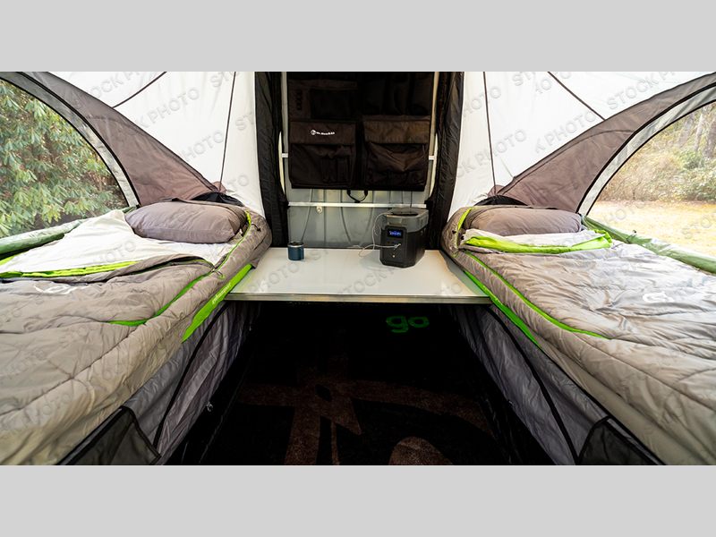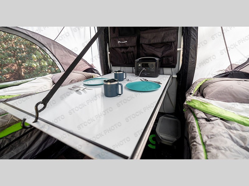 This rugged and off-road camper is perfect for all your outdoor adventures. You are sure to love the easy to tow design and added durability thanks to the 6000 series aluminum custom extrusions. The dry weight for this model is 1,200 lbs. and the overall carrying capacity is 950 lbs., meaning you have the option to bring along more camp gear. The tent awning and two Cloud Layer mattresses will add to your comfort each day, and you'll appreciate the table/bench seat panel so you can eat inside on rainy days!