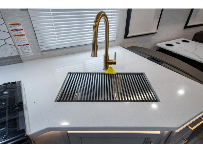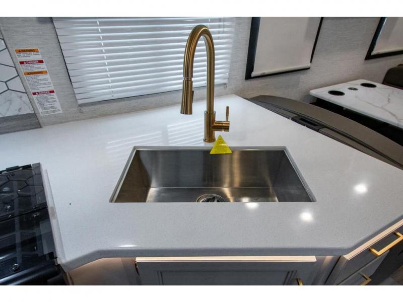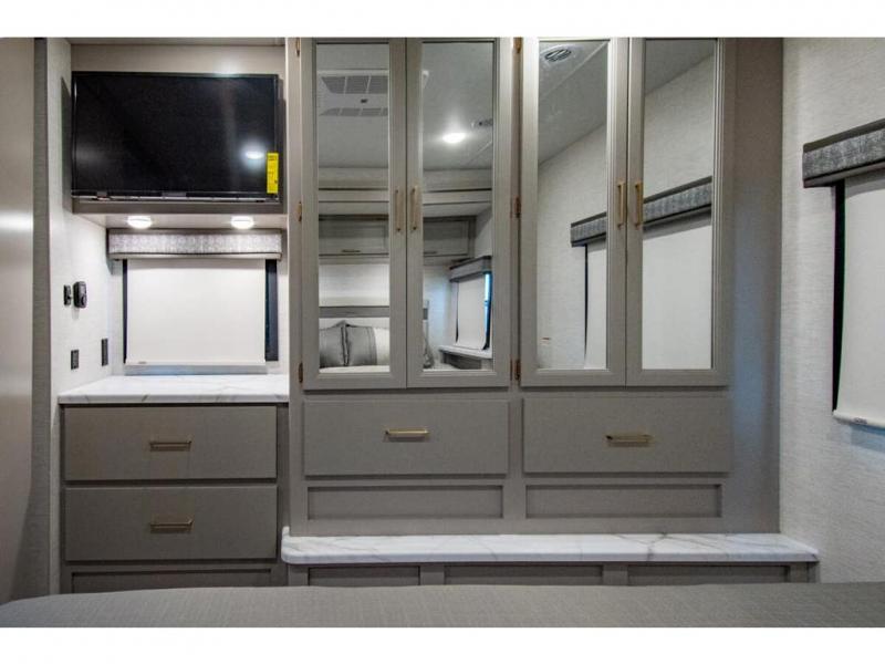 This double slide out coach will feel a little more like home since it features a rear private bedroom with a king bed slide out, your own 32" TV, and a large closet for your things. Your guests can sleep on the drop-down overhead bunk, the Dream Dinette, or the jack-knife sofa, and there is a 42" TV in the living area if they want to watch a movie at night. This A.C.E has a fully-equipped indoor kitchen, plus an exterior kitchen the chef is sure to love, and of course a full bath is on board, making your adventures easier than ever!