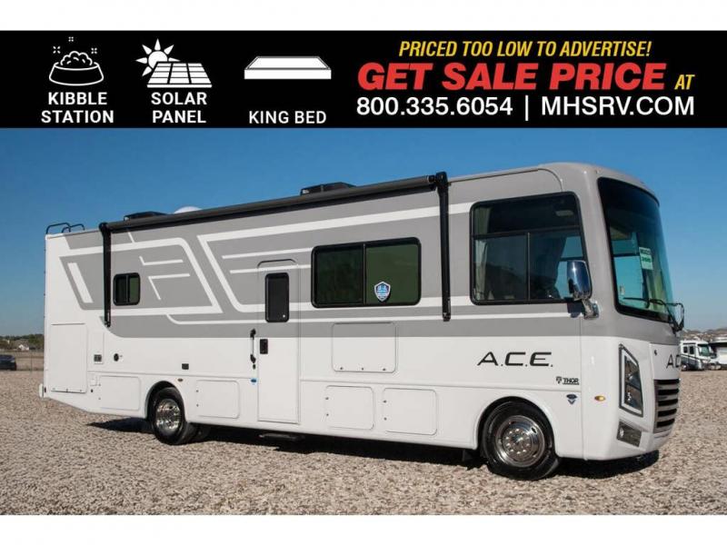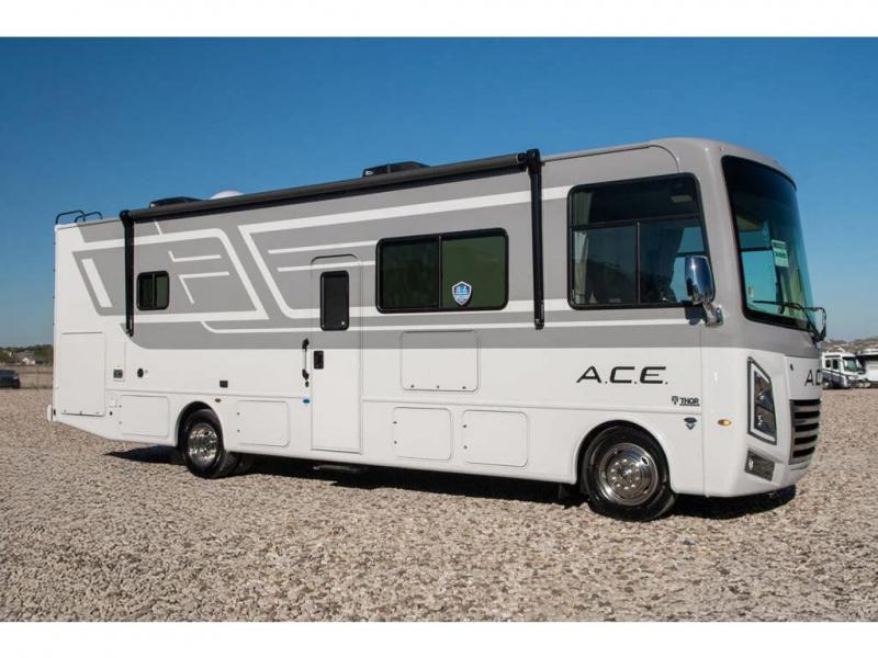 MSRP $189,826. New 2026 Thor Motor Coach A.C.E. Model 30C is approximately 31 feet 11 inches in length and rides on Fords new chassis featuring a 7.3L PFI V-8, a 6-speed TorqShift® automatic transmission, an updated instrument cluster, automatic headlights and a tilt/telescoping steering wheel. A few additional features include 2 new partial paint exterior options, general décor updates throughout, upgraded radio with Apple CarPlay & Android Auto, Serta mattress, LED rear taillights and much more. The A.C.E. also features a drop down overhead loft, multiple USB charging ports throughout, exterior kitchen, Winegard ConnecT Wifi extender + 4G, bedroom TV, exterior entertainment center, attic fans, black tank flush, second auxiliary battery, power side mirrors with integrated side view cameras, a mud-room, roof ladder, generator, electric patio awning with integrated LED lights, stainless steel wheel liners, hitch, valve stem extenders, refrigerator, microwave, water heater, cockpit mirrors, slide-out workstation in the dash, floor level cockpit window for better visibility while turning and a "below floor" furnace and water heater helping keep the noise to an absolute minimum and the exhaust away from the kids and pets. Shop hundreds of class A motorhomes all at 1 location! Choose from Thor A.C.E. – Resonate – Hurricane – Windsport – Luminate – Indigo – Vegas – Axis – Challenger – Miramar Fleetwood Flair – Fortis – Flex – Bounder - Forest River Georgetown - FR3 – Entegra Coach Vision – Vision XL – Emblem – Holiday Rambler Admiral – Eclipse – Invicta – Vacationer - and much more. We also sell quality pre-owned models such as Jayco Alante SE – Alante – Precept – Precept Prestige – Tiffin Allegro Open Road – Newmar Canyon Star – Bay Star – Winnebago Vista – Sunstar – Adventurer – Coachmen Mirada – Pursuit - Encore and much more. Visit MHSRV.com for our complete line-up and the sale prices that have made us the #1 volume selling motor home dealership in the world 12 years in a row! For additional details on this unit and our entire inventory including brochures, window sticker, videos, photos, reviews & testimonials as well as additional information about Motor Home Specialist and our manufacturers please visit us at MHSRV.com or call 800-335-6054. At Motor Home Specialist, we DO NOT charge any prep or orientation fees like you will find at other dealerships. All sale prices include a 200-point inspection, interior & exterior wash, detail service and a fully automated high-pressure rain booth test and coach wash that is a standout service unlike that of any other in the industry. You will also receive a thorough coach orientation with an MHSRV technician, a night stay in our delivery park featuring landscaped and covered pads with full hook-ups and much more! Read Thousands upon Thousands of 5-Star Reviews at MHSRV.com and See What They Had to Say About Their Experience at Motor Home Specialist. WHY PAY MORE? WHY SETTLE FOR LESS?