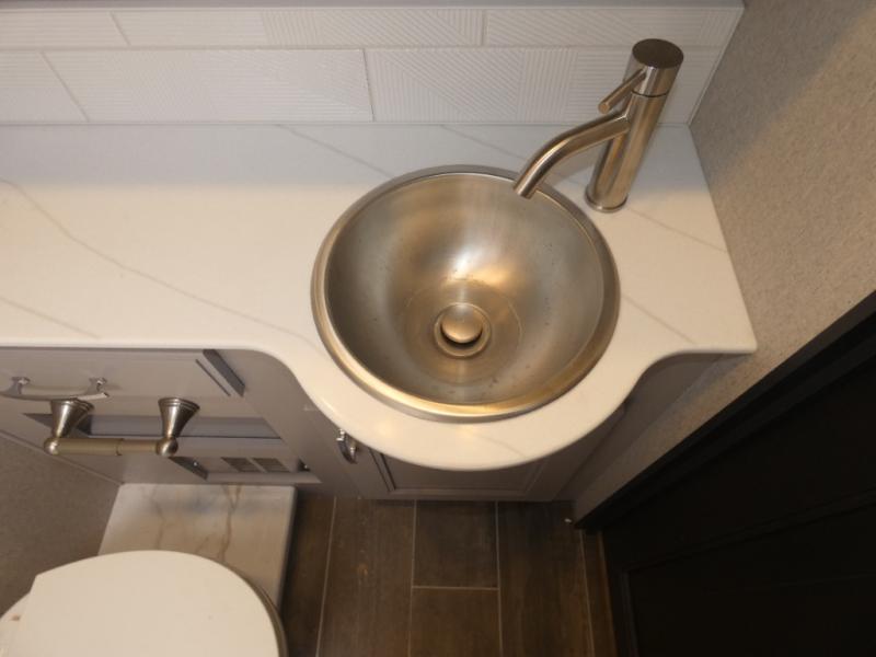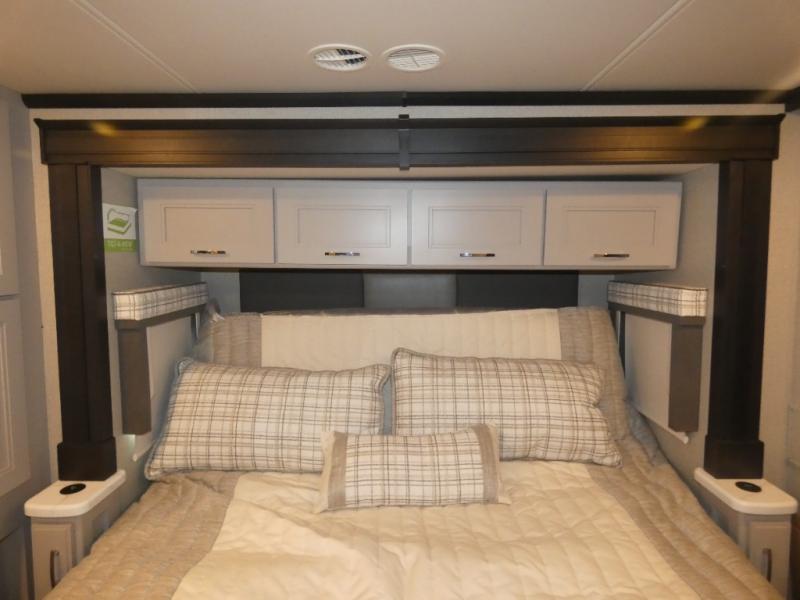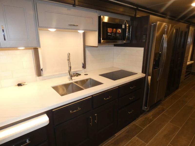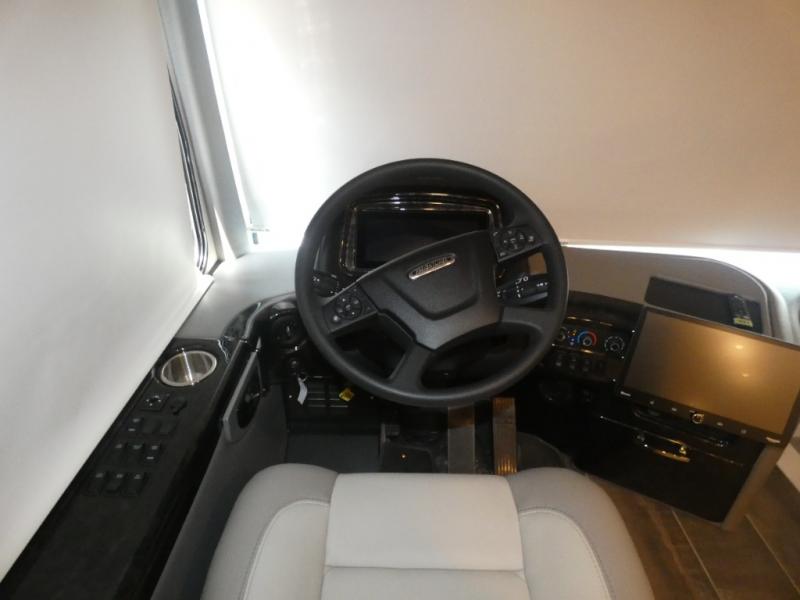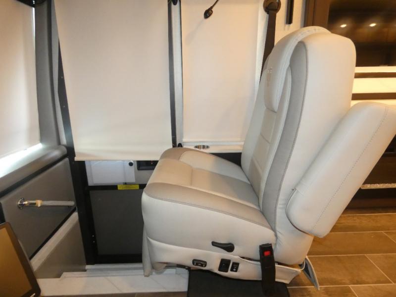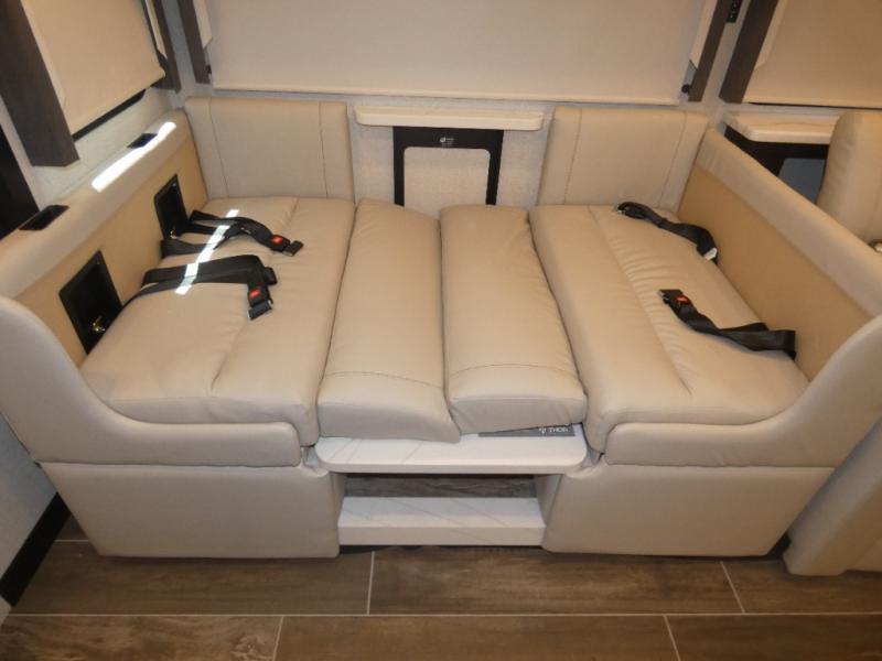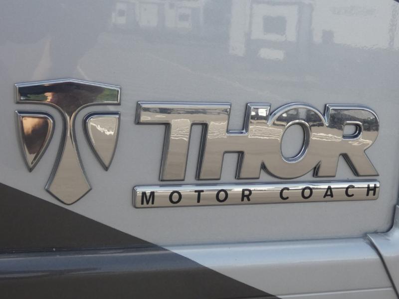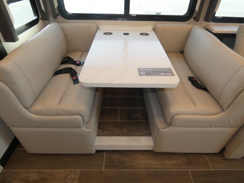 With any Aria Class A diesel motorhome by Thor Motor Coach, experience RV living with all the luxurious amenities you are accustom to, command the roadways with improved handling from the VFS front axle with a 55-degree wheel cut, and enjoy a smooth ride thanks to the Air-Ride suspension and Sachs shock absorbers. The driver will also appreciate the 10.1" touchscreen dash radio with Bluetooth, and Sirius/XM prep when navigating the roads, and the comfort of the leatherette reclining/swivel adjustable captain's chairs. The bathroom provides an oversized full height shower with a glass door and a designer backsplash, while the kitchen provides solid surface countertops and a dinette. You'll also enjoy designer tile backsplash, a large double bowl stainless steel sink with a single handle faucet, a pull-down sprayer, plus full kitchen amenities. More standout features include the Wyndham cabinetry with rake style cabinet doors & nickel finish hardware, plus much much more depending on the Aria you take on the road!