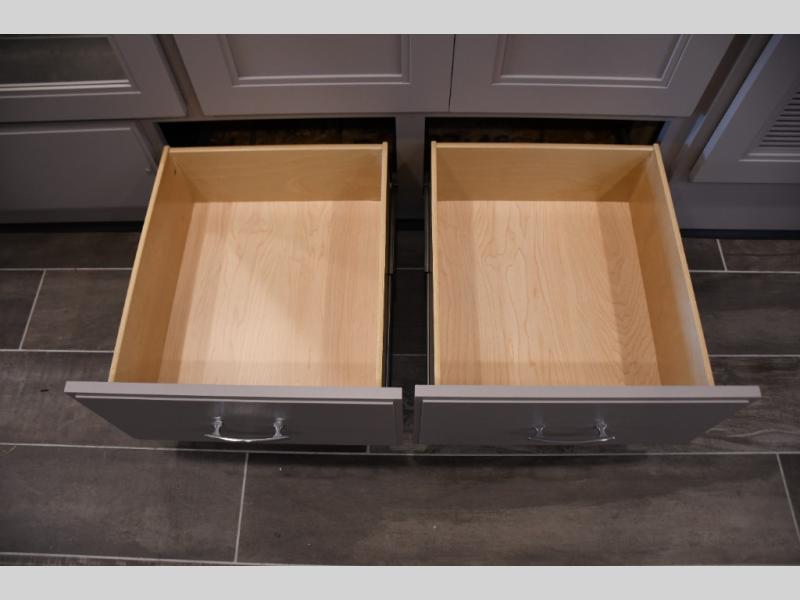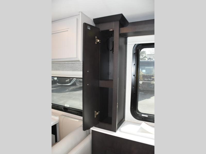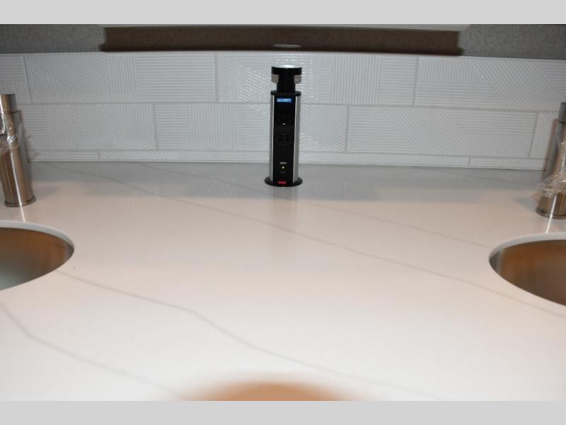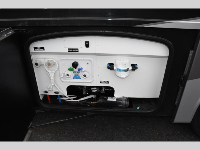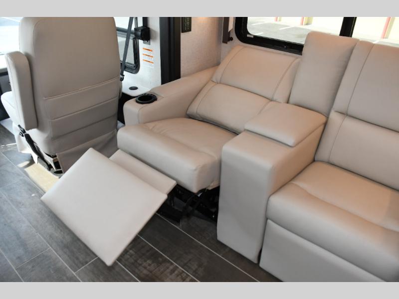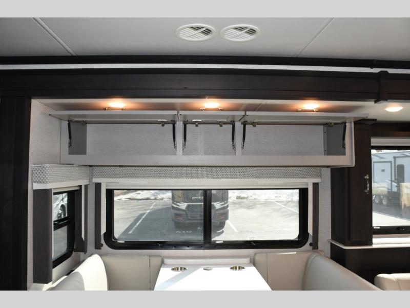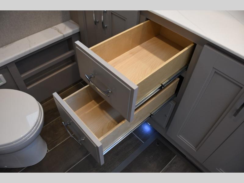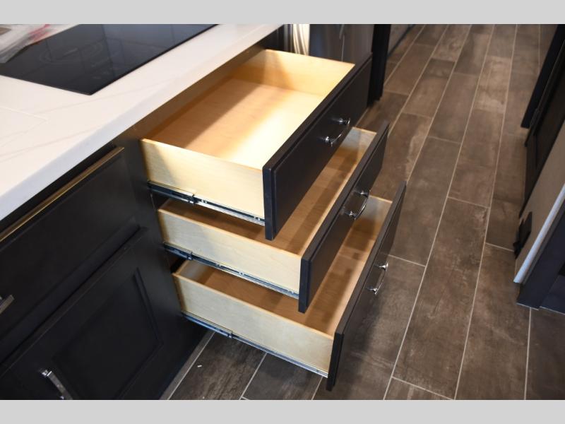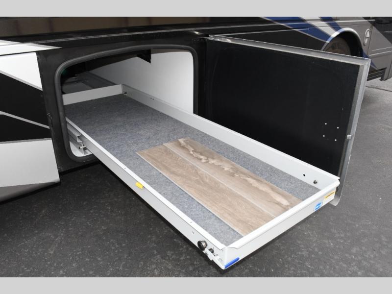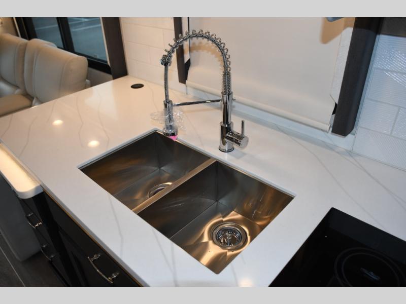 Step inside the Aria 3901 and discover a living space that rivals a high-end home. Panoramic windows fill the interior with natural light, creating an open and welcoming atmosphere. The chef-ready galley offers premium appliances, abundant counter space, and clever storage for seamless meal preparation, whether you’re cooking breakfast before hitting the trail or hosting friends for dinner under the stars. Luxurious seating choices and entertainment options make the main living area a favorite place to relax and socialize.