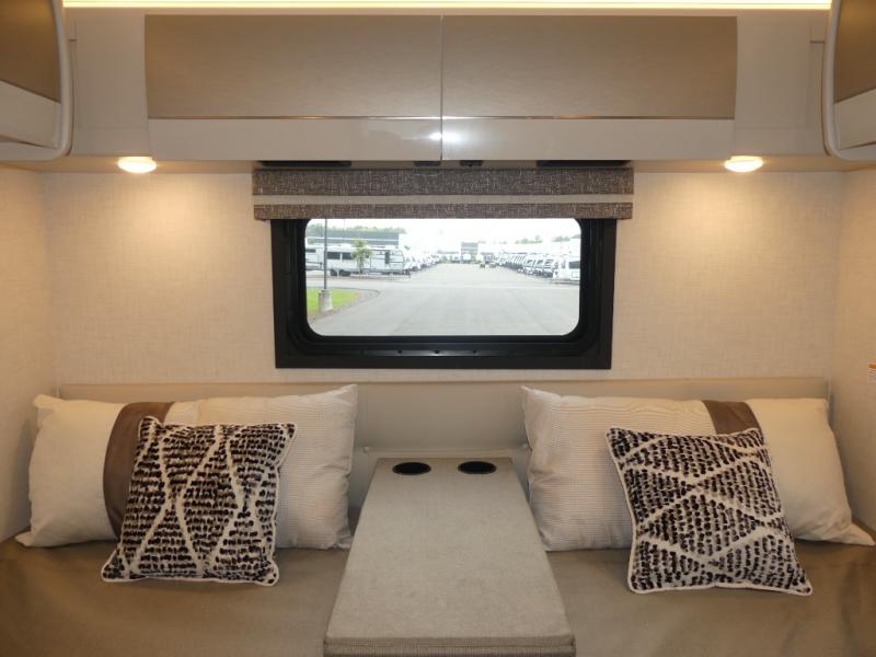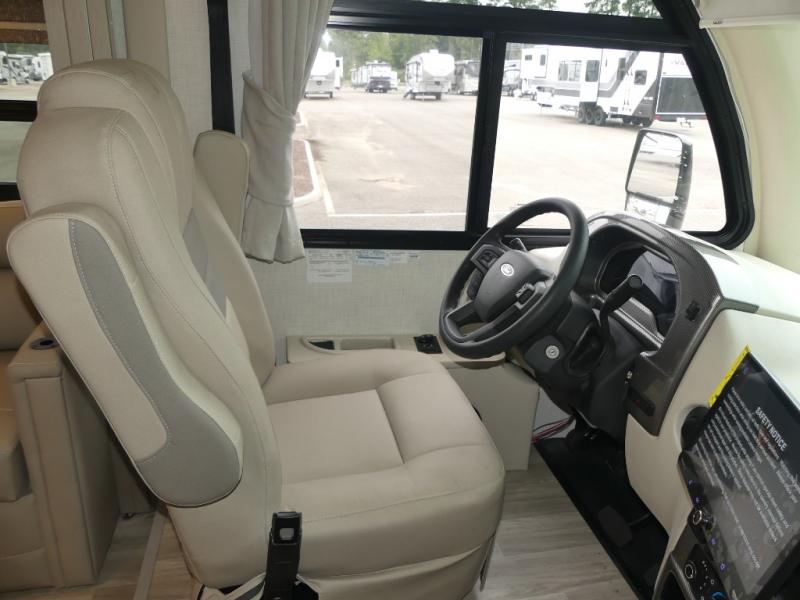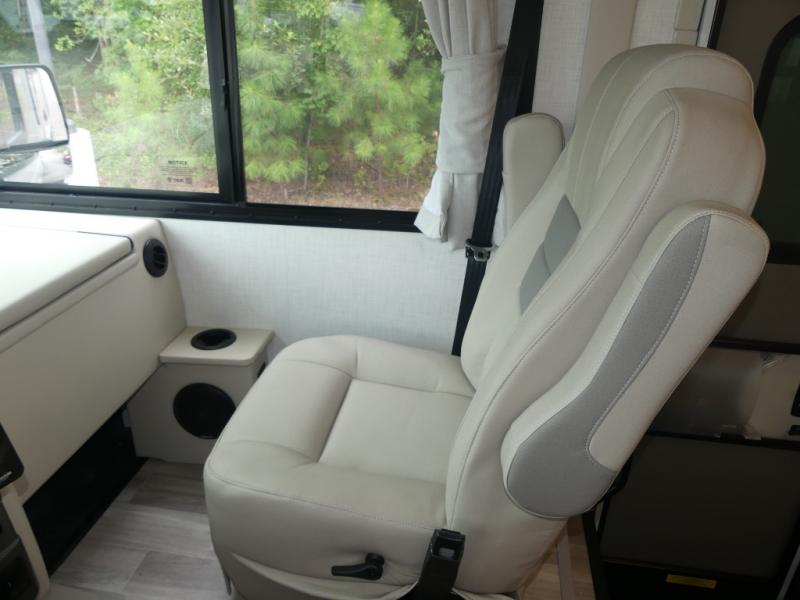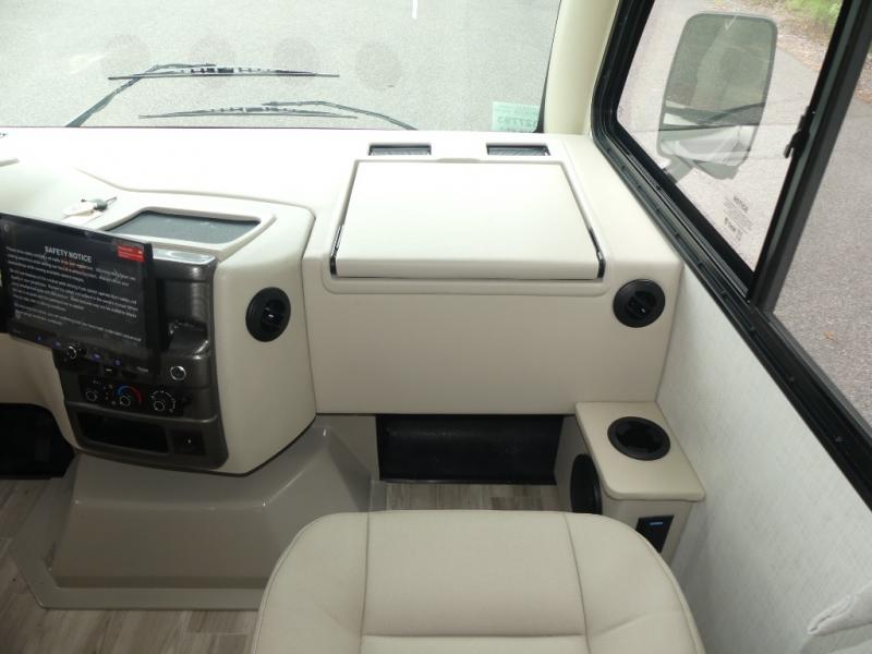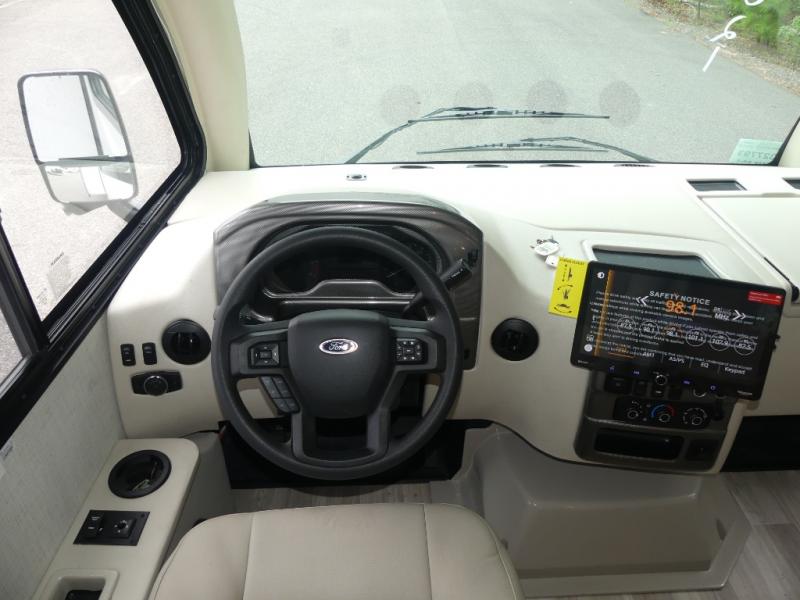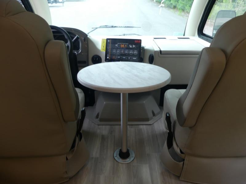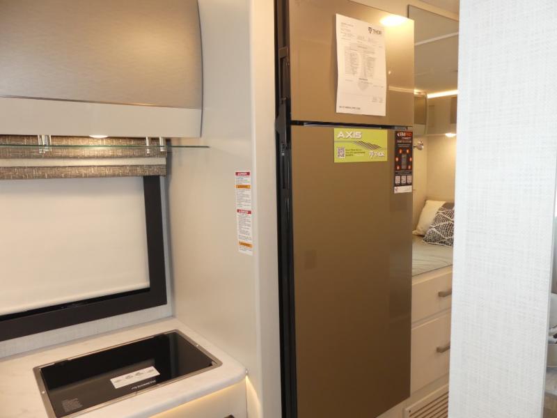With any Axis Class A gas motorhome by Thor Motor Coach you will enjoy added technology features to make each trip enjoyable, like the RapidCamp+ multiplex lighting and systems control and the Winegard ConnecT 2.0 Wi-Fi/4G/TV antenna. Each model features heated and remote exterior mirrors with integrated side view cameras, reclining and swivel leatherette captain's chairs, and a dash workstation with 110-volt and 12-volt outlets to get some work done if needed. Relaxing after a long day of traveling will be easy with the leatherette furniture, complete kitchen and bath amenities, and 82" interior ceiling height. The HD-MAX exterior with graphics package and black frameless windows provide a sleek look you are sure to love, and don't overlook the lateral arm power awning with integrated LED lighting and lighted rotocast storage compartments for all your gear.