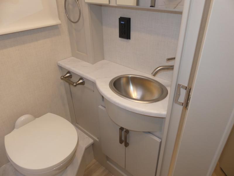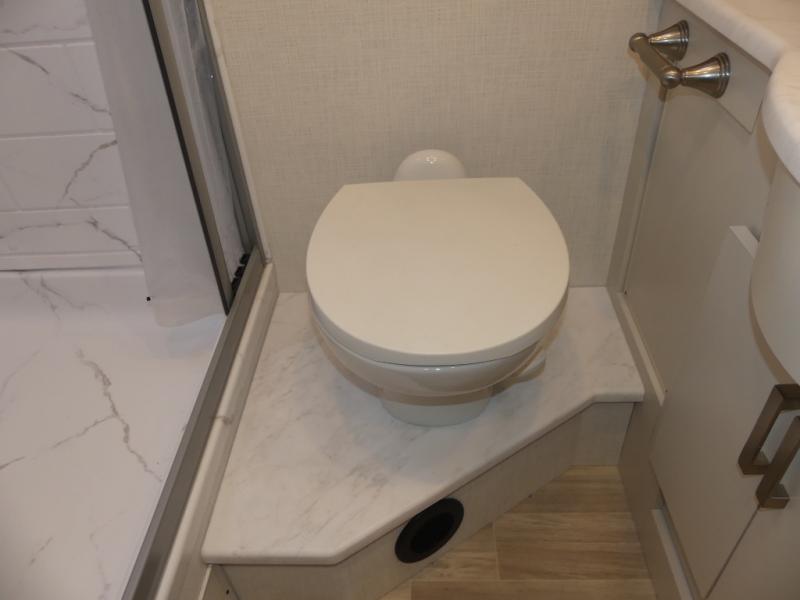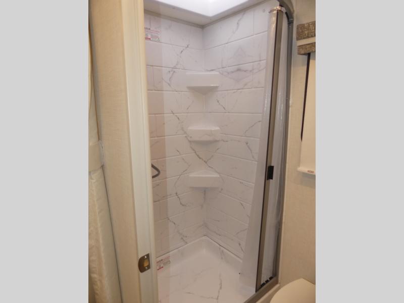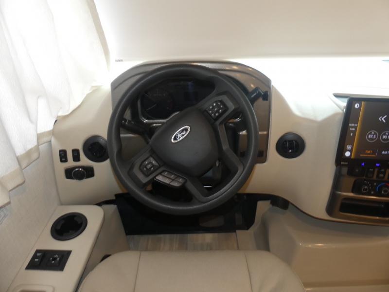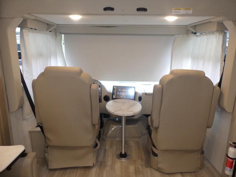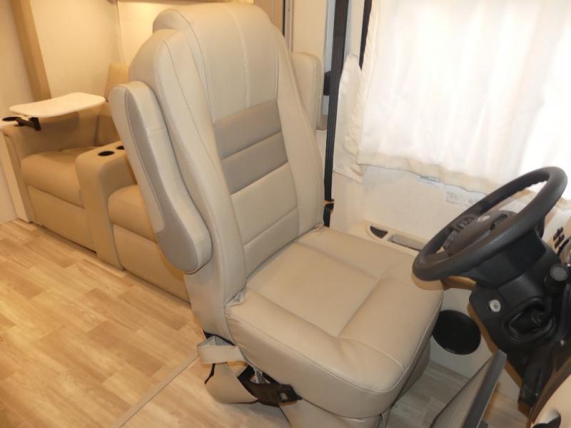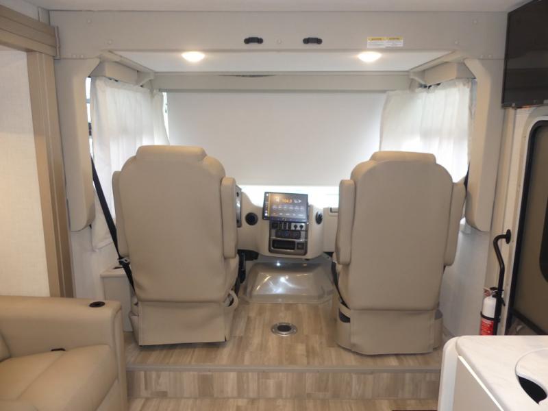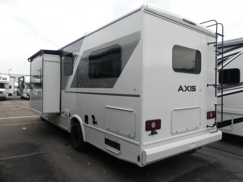 With any Axis Class A gas motorhome by Thor Motor Coach you will enjoy added technology features to make each trip enjoyable, like the RapidCamp+ multiplex lighting and systems control and the Winegard ConnecT 2.0 Wi-Fi/4G/TV antenna. Each model features heated and remote exterior mirrors with integrated side view cameras, reclining and swivel leatherette captain's chairs, and a dash workstation with 110-volt and 12-volt outlets to get some work done if needed. Relaxing after a long day of traveling will be easy with the leatherette furniture, complete kitchen and bath amenities, and 82" interior ceiling height. The HD-MAX exterior with graphics package and black frameless windows provide a sleek look you are sure to love, and don't overlook the lateral arm power awning with integrated LED lighting and lighted rotocast storage compartments for all your gear.
