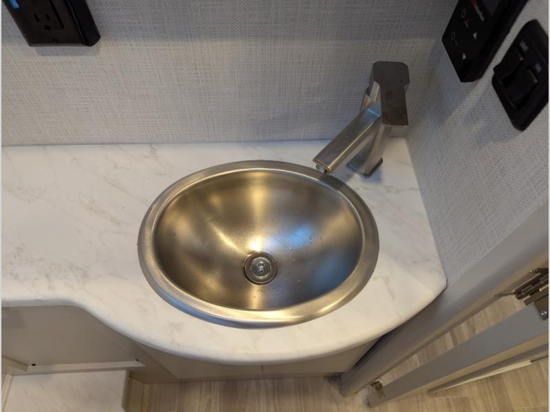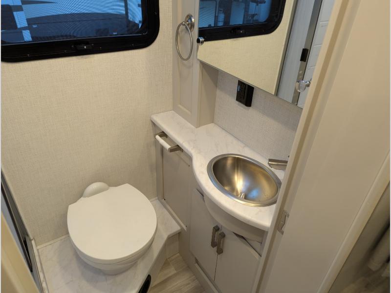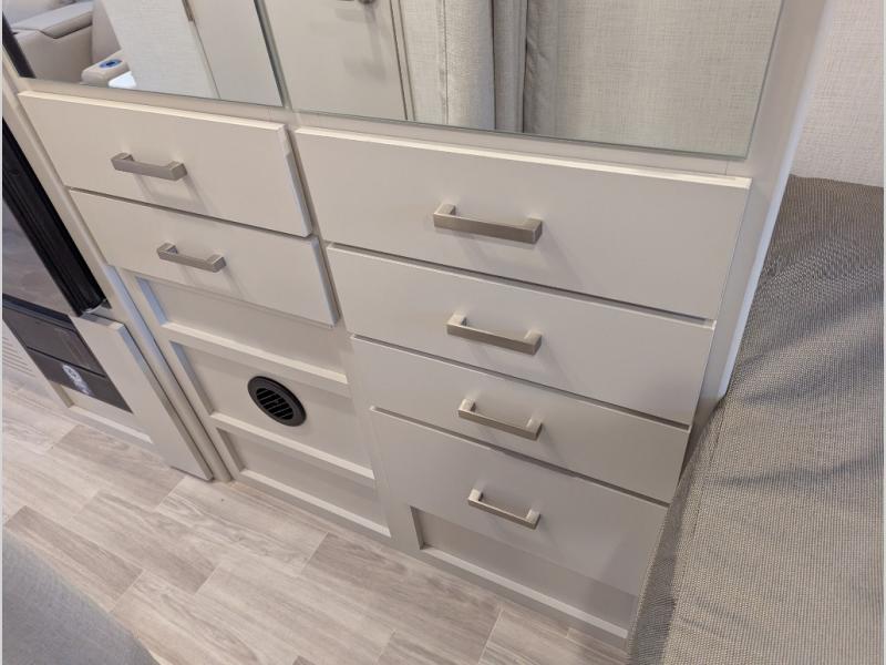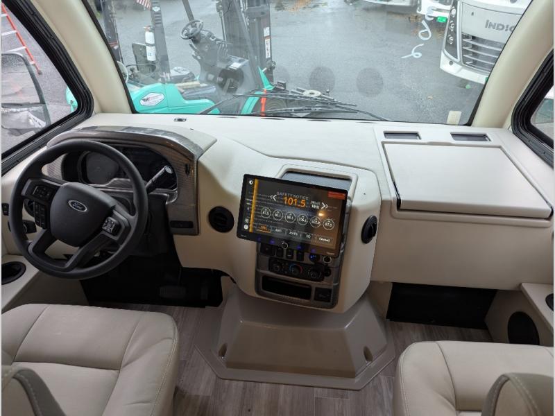 With any Axis Class A gas motorhome by Thor Motor Coach you will enjoy added technology features to make each trip enjoyable, like the RapidCamp+ multiplex lighting and systems control and the Winegard ConnecT 2.0 Wi-Fi/4G/TV antenna. Each model features heated and remote exterior mirrors with integrated side view cameras, reclining and swivel leatherette captain's chairs, and a dash workstation with 110-volt and 12-volt outlets to get some work done if needed. Relaxing after a long day of traveling will be easy with the leatherette furniture, complete kitchen and bath amenities, and 82" interior ceiling height. The HD-MAX exterior with graphics package and black frameless windows provide a sleek look you are sure to love, and don't overlook the lateral arm power awning with integrated LED lighting and lighted rotocast storage compartments for all your gear.
