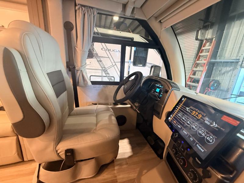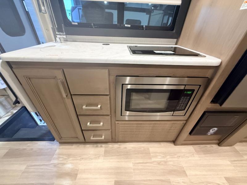 Wherever you decide to roam, you can be sure to make the most out of each trip in this coach! The swivel captain's seats can be turned to face the main living room once you park, and there is additional seating space on the theater seating. There is even a 32" Smart TV across from the sofa to enjoy movies! It will be so easy to make meals with a two burner gas cooktop and convection microwave with an air fryer, plus there is a 12V double door refrigerator for cold items. A full bath will let you freshen up after a day of exploring, and the rear bedroom with a privacy curtain is sure to bring comfort. Here, you'll enjoy twin beds with a king bed conversion, a USB power charging center for your electronics, and a 32" Smart TV so you can watch shows in bed!