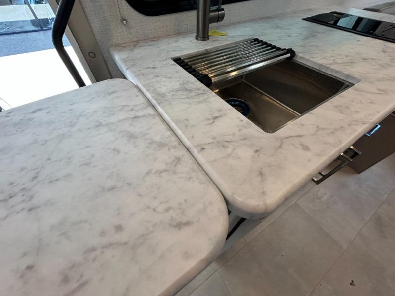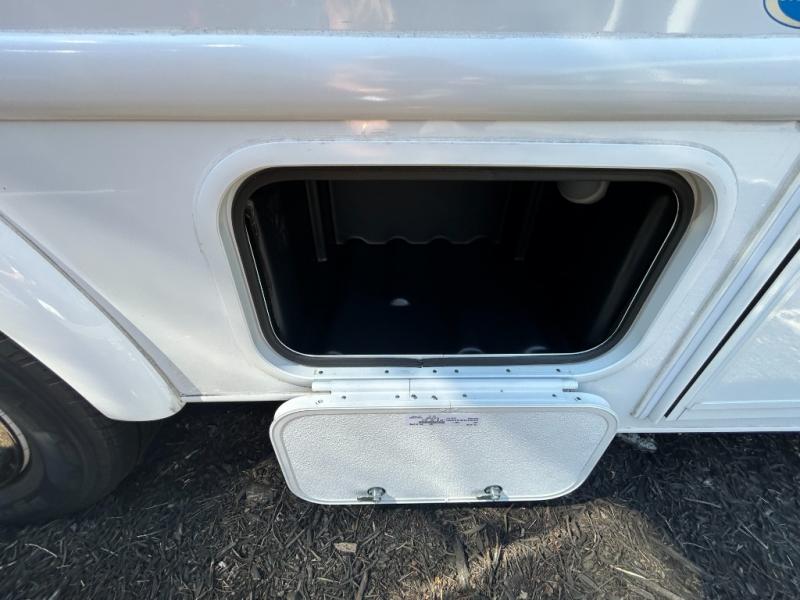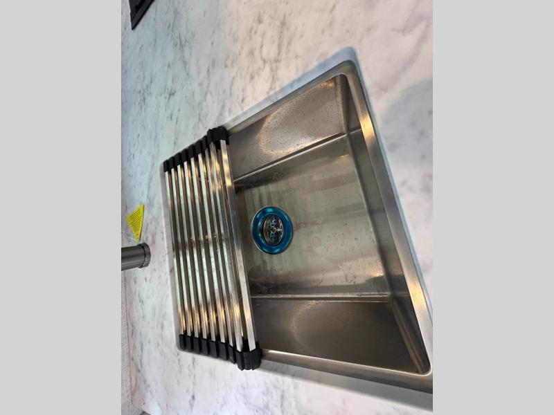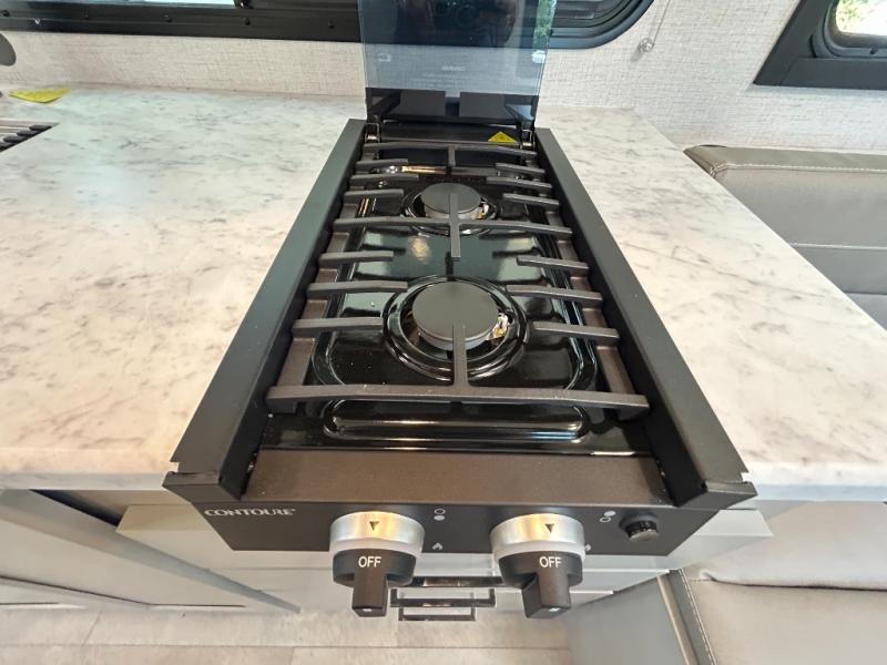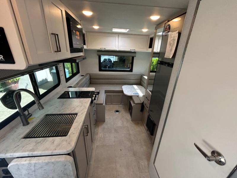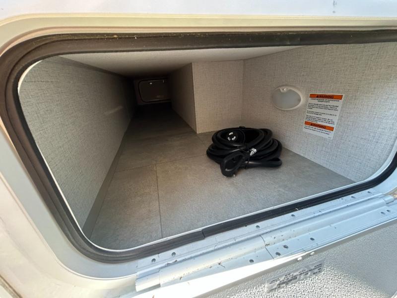 This compact, yet cozy coach is perfect for trips to the campground each weekend! Once you've reached your destination, you can set up the 11' power awning, unload the exterior storage compartments, and relax in your camp chairs. The two burner gas cooktop and convection microwave with an air fryer will let you make meals each day, and there is a 12V refrigerator to keep food fresh. A flip-up counter is another great feature that will give you more prep space! You can freshen up in the wet bath, grab your night clothes from the closet, then convert the U-shaped dinette into a 54" x 77" bed for a great night's rest!