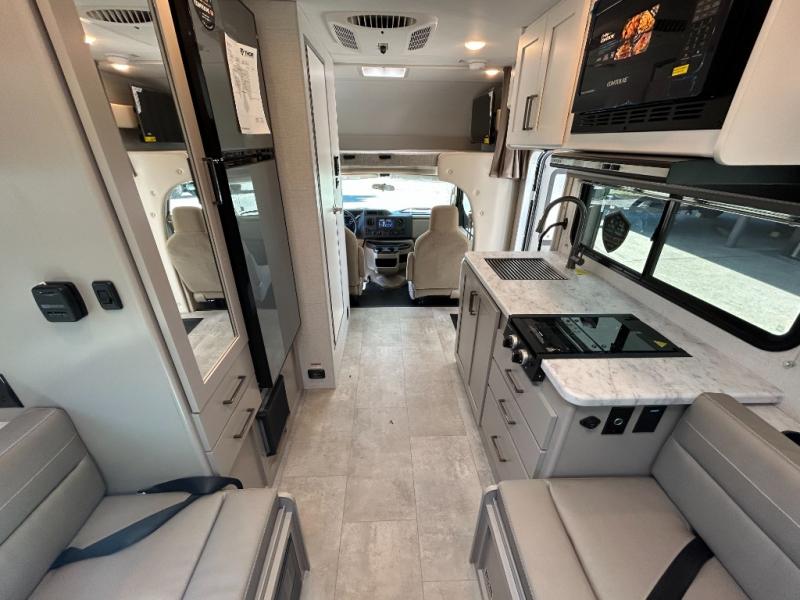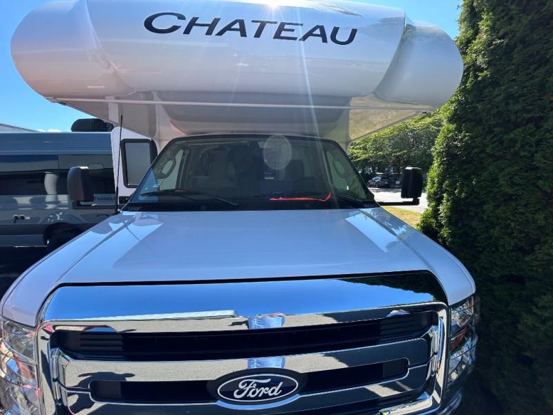 With any Chateau ESpec Class C gas motorhome by Thor Motor Coach, you will find convenient amenities, a modern interior, and a reliable Ford E-Series chassis, with an optional Chevy chassis on select models to power your adventures. There is welded tubular aluminum roof and sidewall cage construction, a one-piece fiberglass front cap, and a premium one-piece domed roof membrane for added strength. Residential vinyl flooring will be easy to keep clean, and you'll love the sleek look of the Hampton Collection two-toned cabinets. These motorhomes also include a 50 State 4.0 kW dual gas/LP generator and a 30-amp shoreline power cord to keep you going, along with a tankless water heater and 13,500 roof front A/C to ensure your comfort!