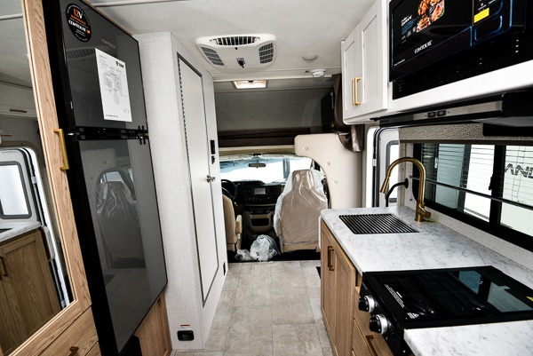 With any Chateau ESpec Class C gas motorhome by Thor Motor Coach, you will find convenient amenities, a modern interior, and a reliable Ford E-Series chassis, with an optional Chevy chassis on select models to power your adventures. There is welded tubular aluminum roof and sidewall cage construction, a one-piece fiberglass front cap, and a premium one-piece domed roof membrane for added strength. Residential vinyl flooring will be easy to keep clean, and you'll love the sleek look of the Hampton Collection two-toned cabinets. These motorhomes also include a 50 State 4.0 kW dual gas/LP generator and a 30-amp shoreline power cord to keep you going, along with a tankless water heater and 13,500 roof front A/C to ensure your comfort!