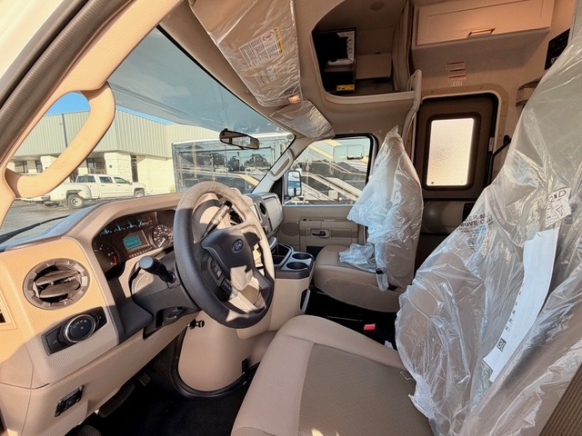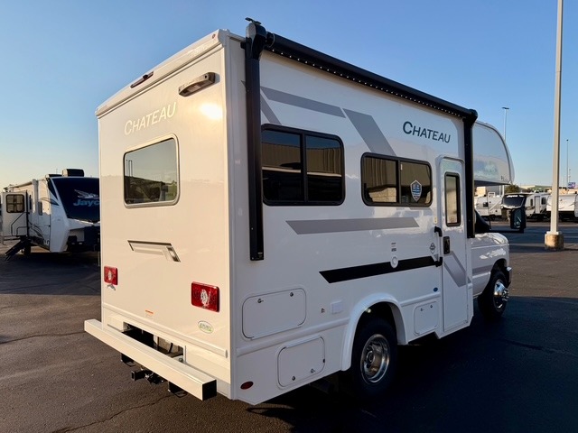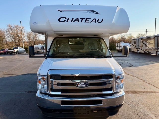With any Chateau ESpec Class C gas motorhome by Thor Motor Coach, you will find convenient amenities, a modern interior, and a reliable Ford E-Series chassis, with an optional Chevy chassis on select models to power your adventures. There is welded tubular aluminum roof and sidewall cage construction, a one-piece fiberglass front cap, and a premium one-piece domed roof membrane for added strength. Residential vinyl flooring will be easy to keep clean, and you'll love the sleek look of the Hampton Collection two-toned cabinets. These motorhomes also include a 50 State 4.0 kW dual gas/LP generator and a 30-amp shoreline power cord to keep you going, along with a tankless water heater and 13,500 roof front A/C to ensure your comfort!