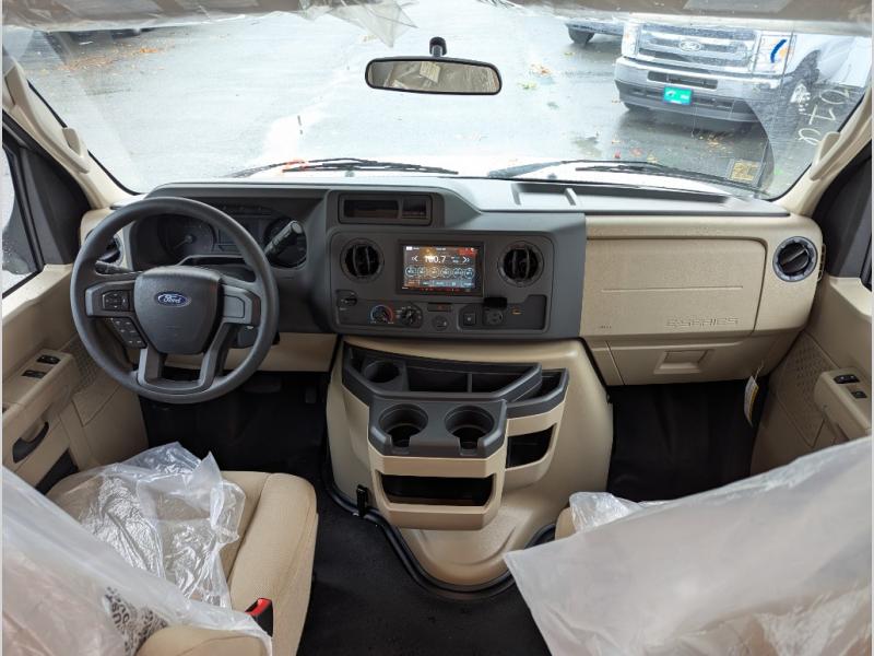 With any Chateau ESpec Class C gas motorhome by Thor Motor Coach, you will find convenient amenities, a modern interior, and a reliable Ford E-Series chassis, with an optional Chevy chassis on select models to power your adventures. There is welded tubular aluminum roof and sidewall cage construction, a one-piece fiberglass front cap, and a premium one-piece domed roof membrane for added strength. Residential vinyl flooring will be easy to keep clean, and you'll love the sleek look of the Hampton Collection two-toned cabinets. These motorhomes also include a 50 State 4.0 kW dual gas/LP generator and a 30-amp shoreline power cord to keep you going, along with a tankless water heater and 13,500 roof front A/C to ensure your comfort!