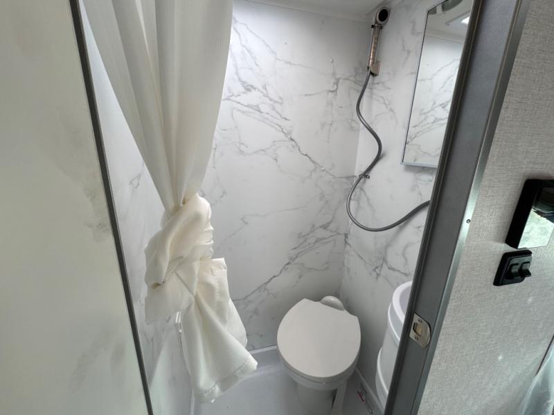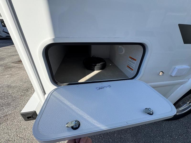 This compact, yet cozy coach is perfect for trips to the campground each weekend! Once you've reached your destination, you can set up the 11' power awning, unload the exterior storage compartments, and relax in your camp chairs. The two burner gas cooktop and convection microwave with an air fryer will let you make meals each day, and there is a 12V refrigerator to keep food fresh. A flip-up counter is another great feature that will give you more prep space! You can freshen up in the wet bath, grab your night clothes from the closet, then convert the U-shaped dinette into a 54" x 77" bed for a great night's rest!