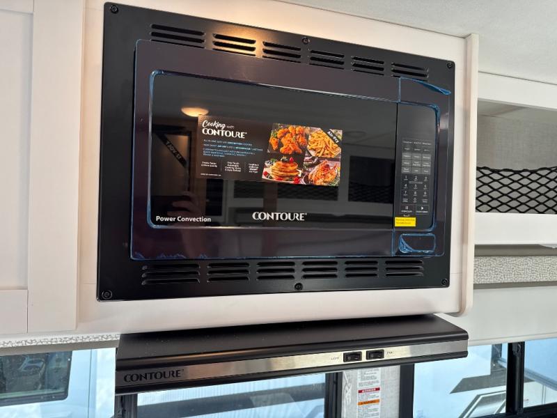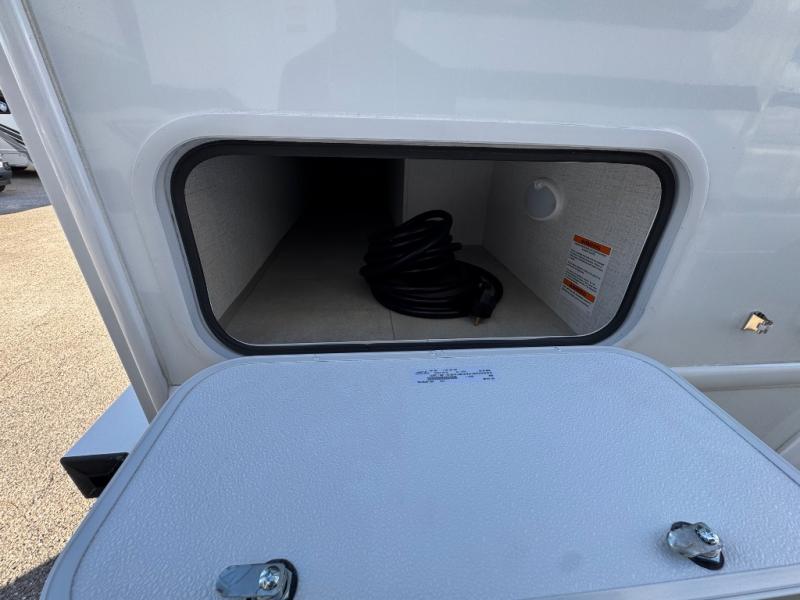 This compact, yet cozy coach is perfect for trips to the campground each weekend! Once you've reached your destination, you can set up the 11' power awning, unload the exterior storage compartments, and relax in your camp chairs. The two burner gas cooktop and convection microwave with an air fryer will let you make meals each day, and there is a 12V refrigerator to keep food fresh. A flip-up counter is another great feature that will give you more prep space! You can freshen up in the wet bath, grab your night clothes from the closet, then convert the U-shaped dinette into a 54" x 77" bed for a great night's rest!