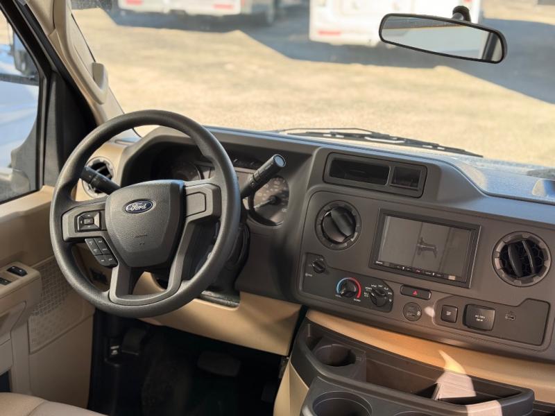 With any Chateau ESpec Class C gas motorhome by Thor Motor Coach, you will find convenient amenities, a modern interior, and a reliable Ford E-Series chassis, with an optional Chevy chassis on select models to power your adventures. There is welded tubular aluminum roof and sidewall cage construction, a one-piece fiberglass front cap, and a premium one-piece domed roof membrane for added strength. Residential vinyl flooring will be easy to keep clean, and you'll love the sleek look of the Hampton Collection two-toned cabinets. These motorhomes also include a 50 State 4.0 kW dual gas/LP generator and a 30-amp shoreline power cord to keep you going, along with a tankless water heater and 13,500 roof front A/C to ensure your comfort!