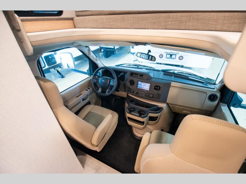 With any Chateau ESpec Class C gas motorhome by Thor Motor Coach, you will find convenient amenities, a modern interior, and a reliable Ford E-Series chassis, with an optional Chevy chassis on select models to power your adventures. There is welded tubular aluminum roof and sidewall cage construction, a one-piece fiberglass front cap, and a premium one-piece domed roof membrane for added strength. Residential vinyl flooring will be easy to keep clean, and you'll love the sleek look of the Hampton Collection two-toned cabinets. These motorhomes also include a 50 State 4.0 kW dual gas/LP generator and a 30-amp shoreline power cord to keep you going, along with a tankless water heater and 13,500 roof front A/C to ensure your comfort!