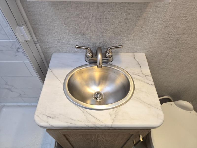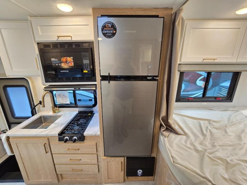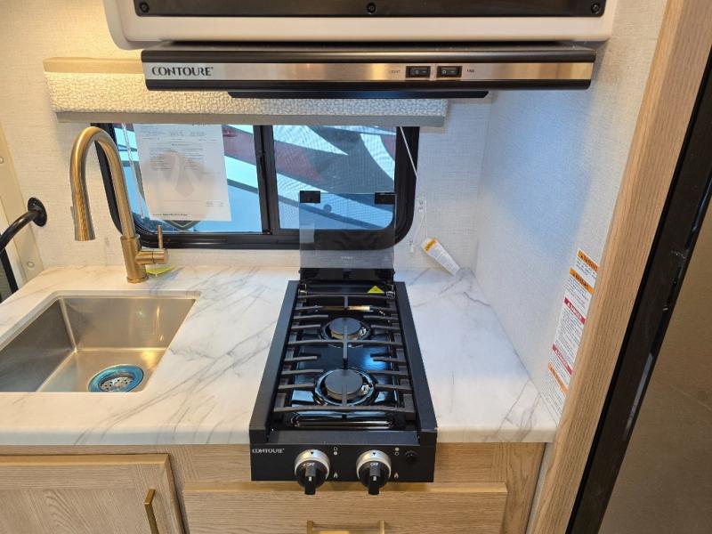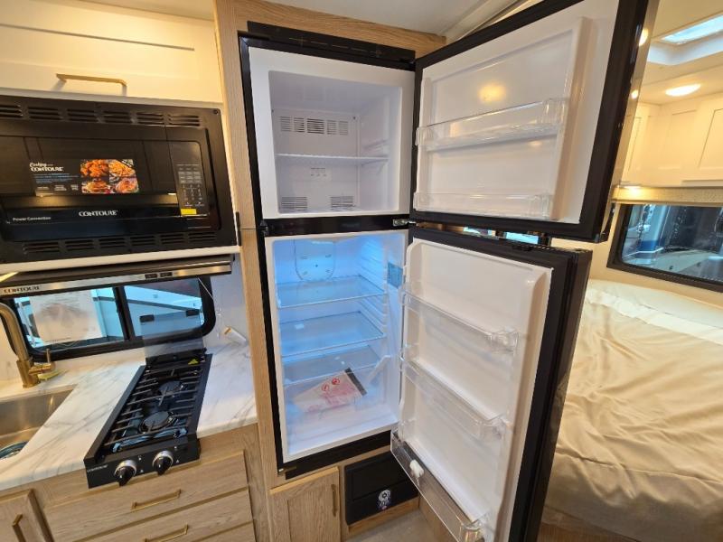 It won't be hard to find comfort in this coach for five! You can freshen up in the rear corner full bath once you've set up camp, then make lunch on the two burner gas cooktop or convection microwave with an air fryer. There is also a 12V refrigerator for cold items and a flip-up countertop for more space. Whether you dine at the Dream Dinette or take your plate outdoors under the 15' power awning, you're sure to have a great time in this motorhome. The rear corner full-size bed will provide a comfy place to rest your head at night, while your guests take the dinette and cab-over bunk!