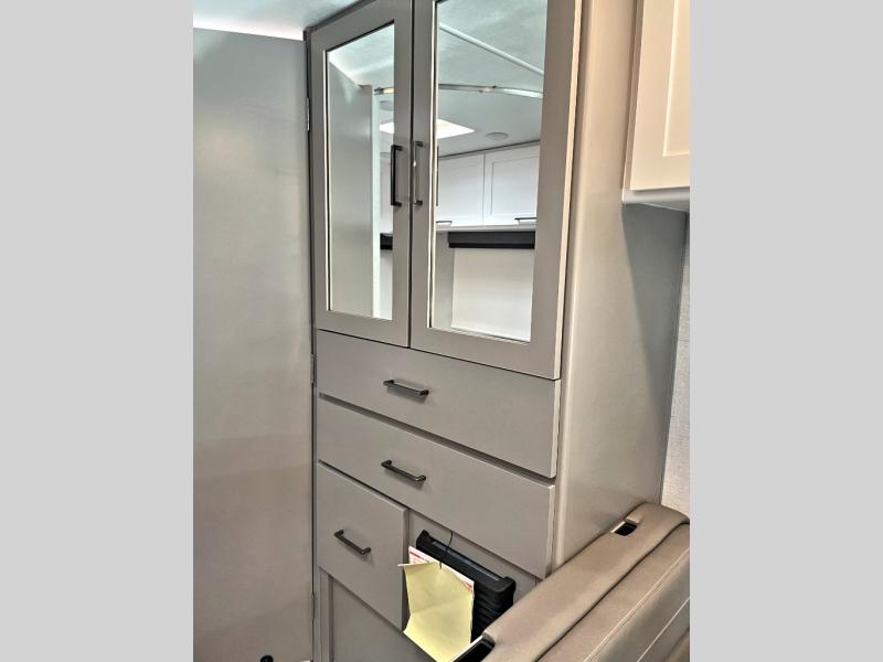 With any Chateau ESpec Class C gas motorhome by Thor Motor Coach, you will find convenient amenities, a modern interior, and a reliable chassis. There is welded tubular aluminum roof and sidewall cage construction, a one-piece fiberglass front cap, and a premium one-piece domed roof membrane for added strength. Residential vinyl flooring will be easy to keep clean, and you'll love the sleek look of the Hampton Collection two-toned cabinets. These motorhomes also include a 50 State 4.0 kW dual gas/LP generator and a 30-amp shoreline power cord to keep you going, along with a tankless water heater and 13,500 roof front A/C to ensure your comfort!