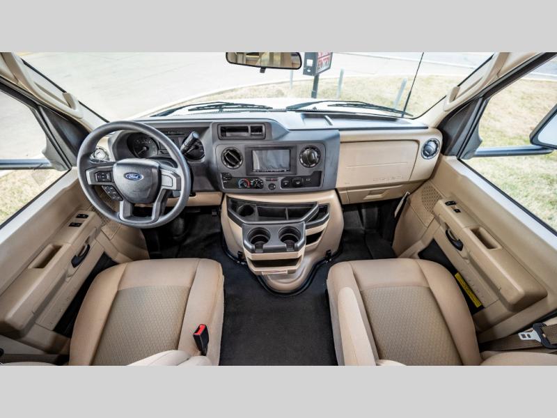 With any Chateau ESpec Essential Class C gas motorhome by Thor Motor Coach, you will find convenient amenities, a modern interior, and a reliable Ford E-Series chassis, with an optional Chevy chassis on select models to power your adventures. There is welded tubular aluminum roof and sidewall cage construction, a one-piece fiberglass front cap, and premium one-piece Crossflex exterior roofing for added strength. Residential vinyl flooring will be easy to keep clean, and you'll love the sleek look of the Coastline Grey flat panel cabinet doors. These motorhomes also include a 4.0 kW gas generator and a 30-amp shoreline power cord to keep you going, along with a tankless water heater and 13,500 roof front A/C to ensure your comfort!