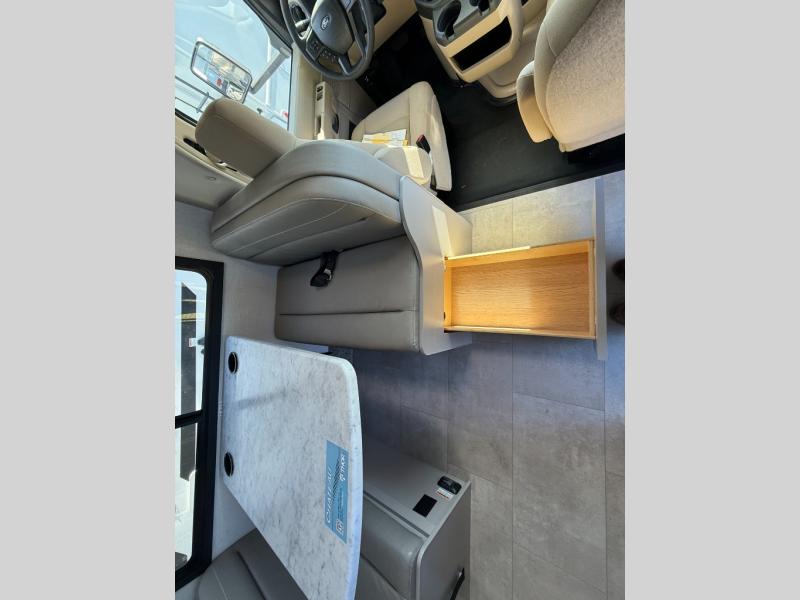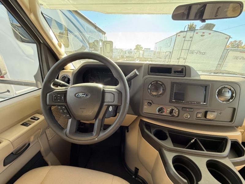With any Chateau ESpec Class C gas motorhome by Thor Motor Coach, you will find convenient amenities, a modern interior, and a reliable Ford E-Series chassis, with an optional Chevy chassis on select models to power your adventures. There is welded tubular aluminum roof and sidewall cage construction, a one-piece fiberglass front cap, and a premium one-piece domed roof membrane for added strength. Residential vinyl flooring will be easy to keep clean, and you'll love the sleek look of the Hampton Collection two-toned cabinets. These motorhomes also include a 50 State 4.0 kW dual gas/LP generator and a 30-amp shoreline power cord to keep you going, along with a tankless water heater and 13,500 roof front A/C to ensure your comfort!