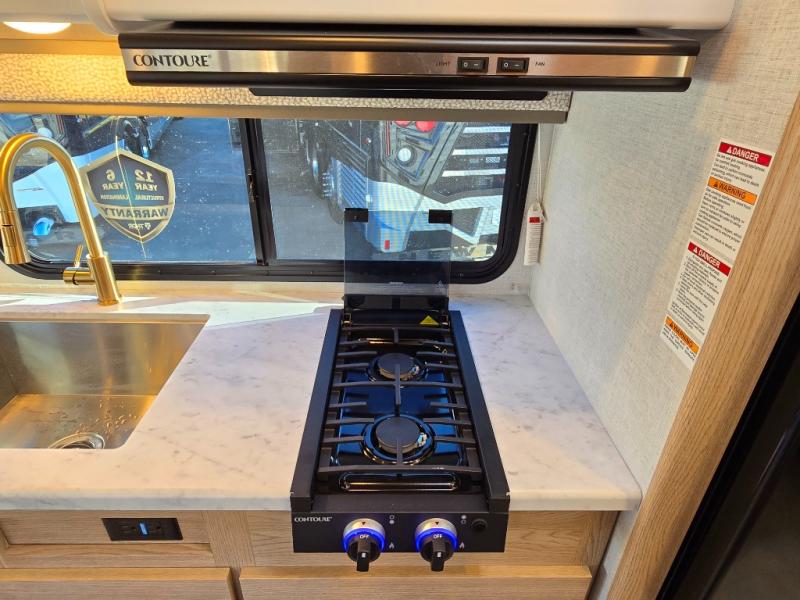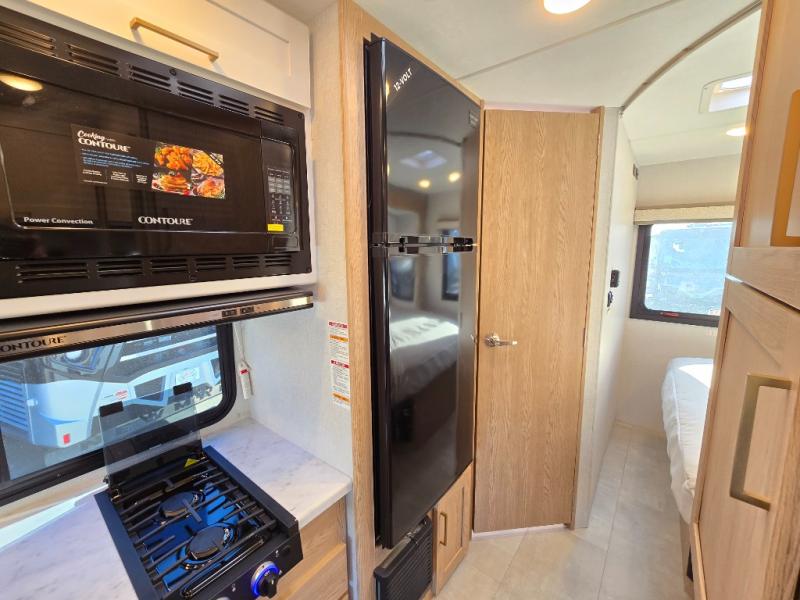 It won't be hard to find comfort in this coach for five! You can freshen up in the rear corner full bath once you've set up camp, then make lunch on the two burner gas cooktop or convection microwave with an air fryer. There is also a 12V refrigerator for cold items and a flip-up countertop for more space. Whether you dine at the Dream Dinette or take your plate outdoors under the 15' power awning, you're sure to have a great time in this motorhome. There is a semi-private bedroom with a 60" x 74" RV queen bed slide and bedroom TV prep if you want the option to watch movies in bed. And your guests can take the Dream Dinette and cab-over bunk at night!
