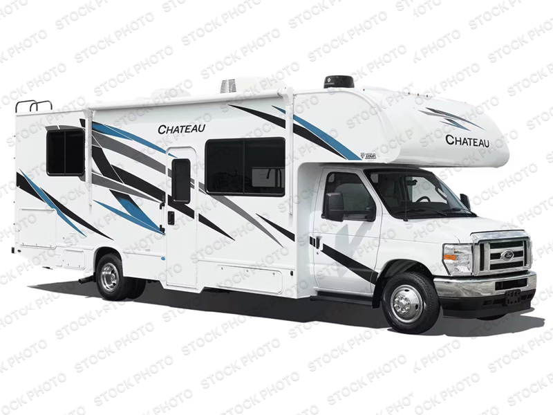 Experience a smooth ride to each destination with the Thor Motor Coach Chateau Class C gas motorhomes! There is a Ford E-Series chassis or optional Chevrolet chassis on select models, and each model includes an 8,000 lb. trailer hitch to bring the family car along. They are constructed with a welded tubular aluminum roof, sidewall cage construction, vacu-bond laminated roof, walls, and floor with block foam insulation to keep the heat and air conditioning inside. The slick fiberglass exterior with graphics package and black framed windows are sure to turn heads down the highway too. Inside, you'll be met with residential vinyl flooring, window privacy shades on select models, a power bath vent, and pressed laminate kitchen countertops. There is even a tankless water heater for endless hot showers, a 4.0 kw gas generator to keep you going, and solar prep for off-grid capabilities!