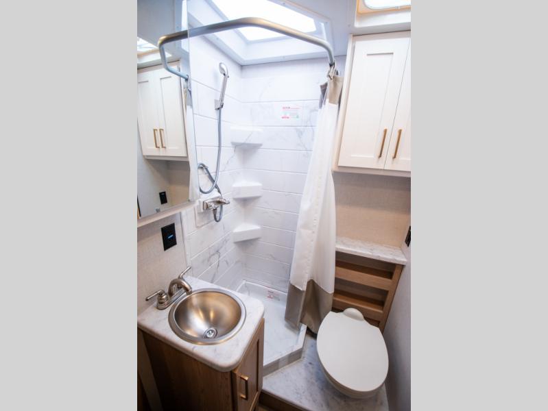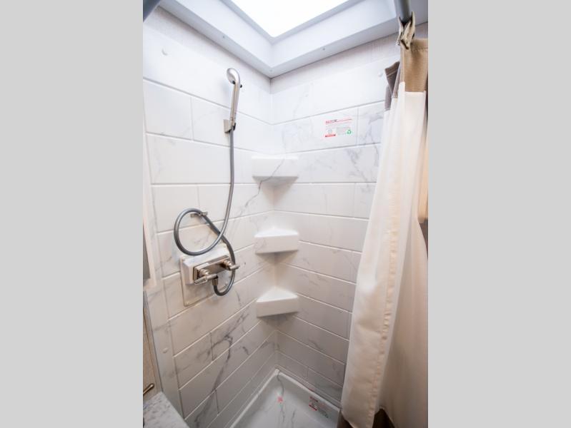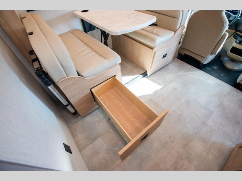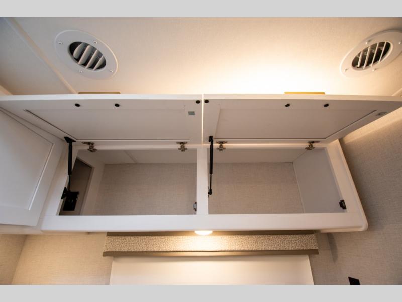 It won't be hard to find comfort in this coach for five! You can freshen up in the mid-coach full bath once you've set up camp, then make lunch on the two burner gas cooktop or convection microwave with an air fryer. There is also a 12V refrigerator for cold items and a flip-up countertop for more space. Whether you dine at the Dream Dinette slide out or take your plate outdoors under the 17' 6" power awning, you're sure to have a great time in this motorhome. The semi-private rear bedroom includes a privacy curtain, two twin beds with a king-size bed conversion, plus TV prep if you want the option to watch shows in bed. And any guests you may have can sleep on the dinette and 52" x 96" cab-over sleeping space!