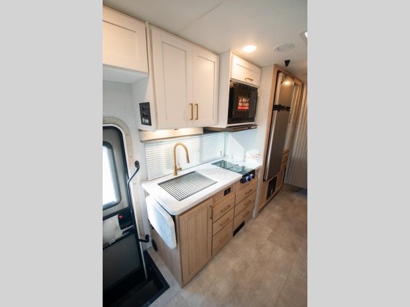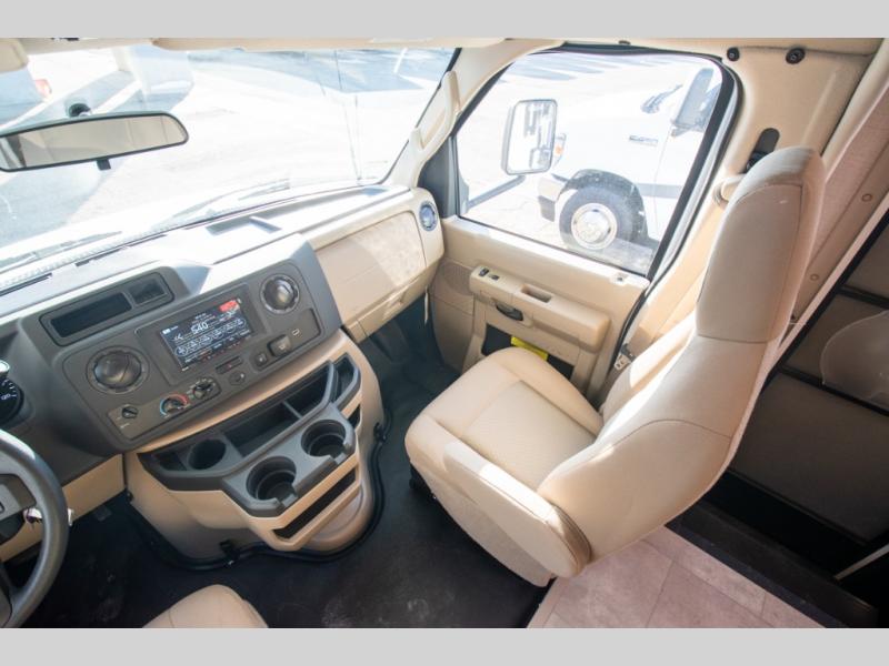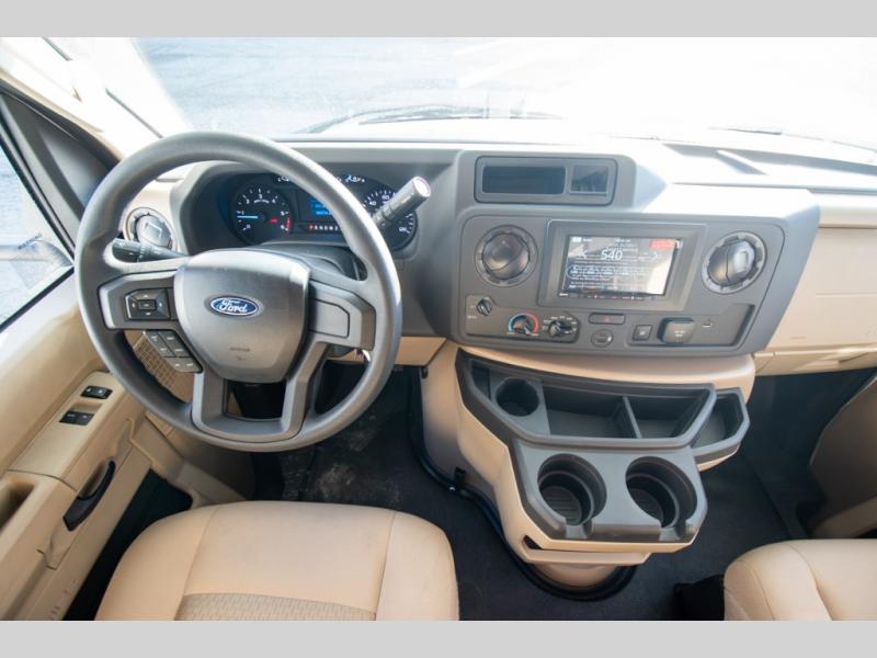 With any Chateau ESpec Class C gas motorhome by Thor Motor Coach, you will find convenient amenities, a modern interior, and a reliable Ford E-Series chassis, with an optional Chevy chassis on select models to power your adventures. There is welded tubular aluminum roof and sidewall cage construction, a one-piece fiberglass front cap, and a premium one-piece domed roof membrane for added strength. Residential vinyl flooring will be easy to keep clean, and you'll love the sleek look of the Hampton Collection two-toned cabinets. These motorhomes also include a 50 State 4.0 kW dual gas/LP generator and a 30-amp shoreline power cord to keep you going, along with a tankless water heater and 13,500 roof front A/C to ensure your comfort!