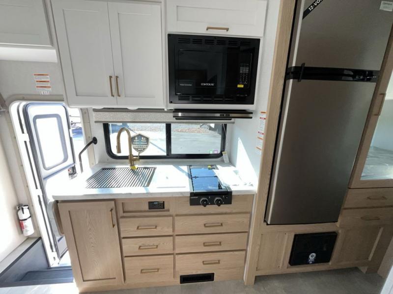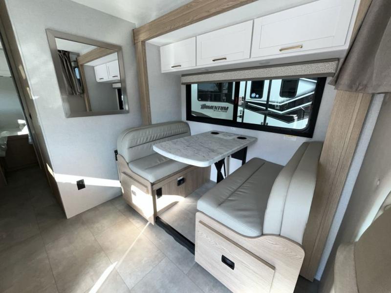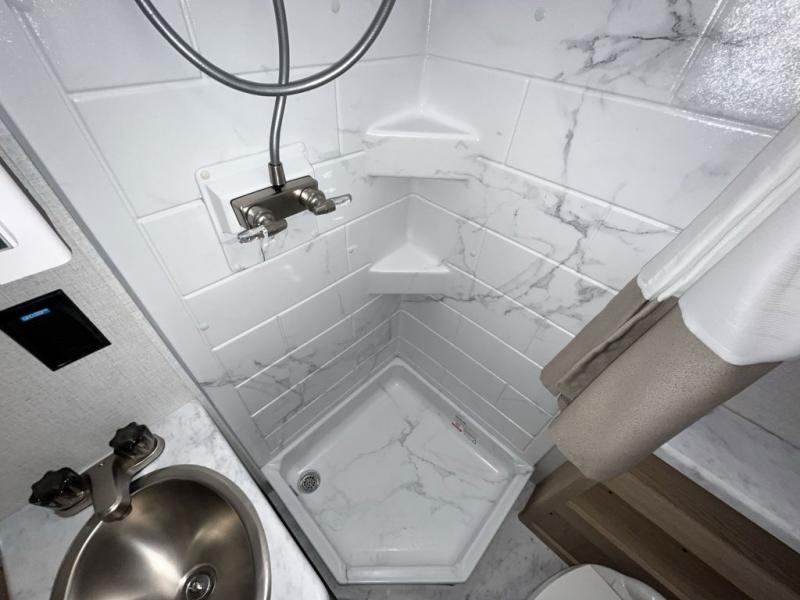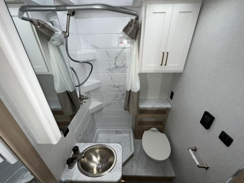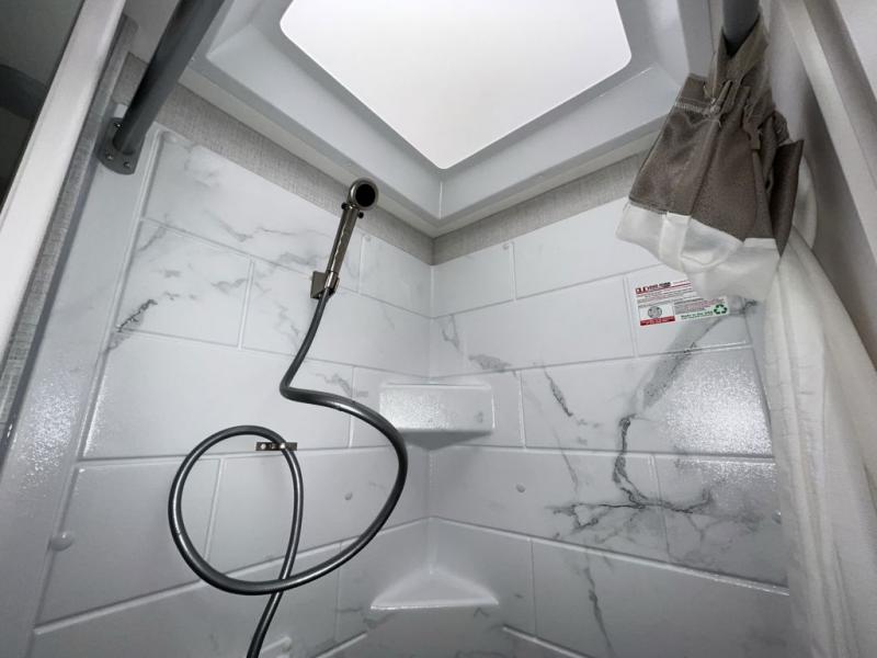 It won't be hard to find comfort in this coach for five! You can freshen up in the mid-coach full bath once you've set up camp, then make lunch on the two burner gas cooktop or convection microwave with an air fryer. There is also a 12V refrigerator for cold items and a flip-up countertop for more space. Whether you dine at the Dream Dinette slide out or take your plate outdoors under the 17' 6" power awning, you're sure to have a great time in this motorhome. The semi-private rear bedroom includes a privacy curtain, two twin beds with a king-size bed conversion, plus TV prep if you want the option to watch shows in bed. And any guests you may have can sleep on the dinette and 52" x 96" cab-over sleeping space!