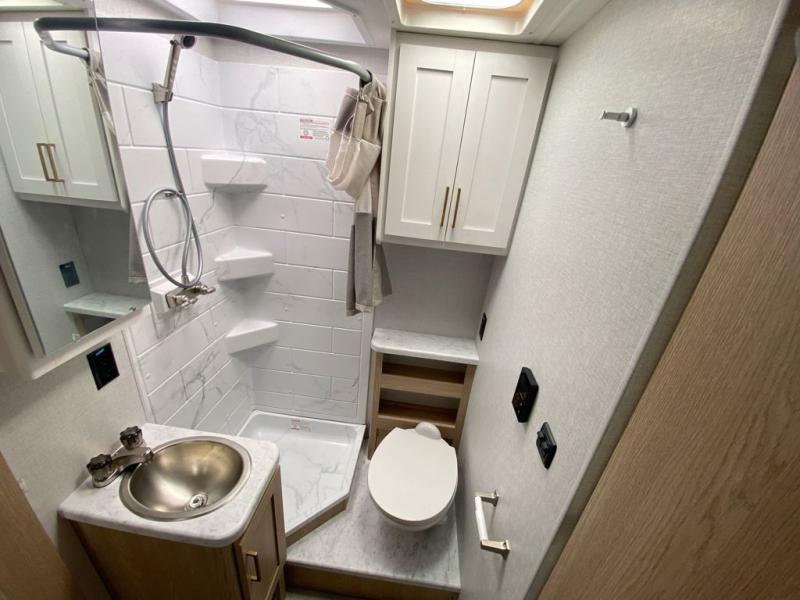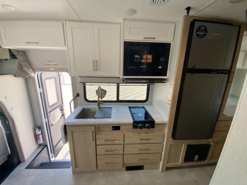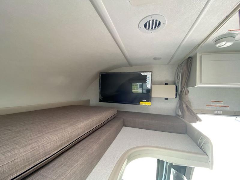 It won't be hard to find comfort in this coach for five! You can freshen up in the mid-coach full bath once you've set up camp, then make lunch on the two burner gas cooktop or convection microwave with an air fryer. There is also a 12V refrigerator for cold items and a flip-up countertop for more space. Whether you dine at the Dream Dinette slide out or take your plate outdoors under the 17' 6" power awning, you're sure to have a great time in this motorhome. The semi-private rear bedroom includes a privacy curtain, two twin beds with a king-size bed conversion, plus TV prep if you want the option to watch shows in bed. And any guests you may have can sleep on the dinette and 52" x 96" cab-over sleeping space!