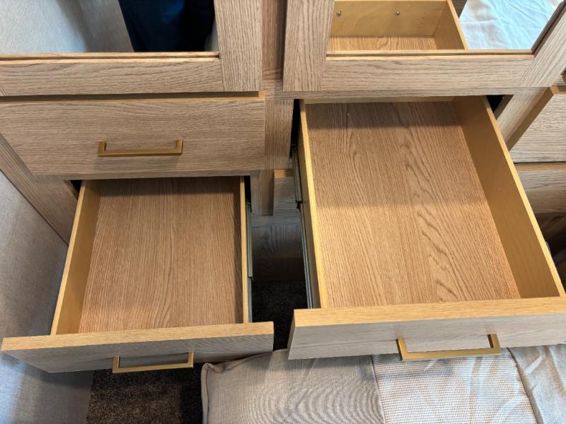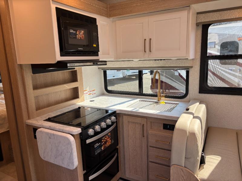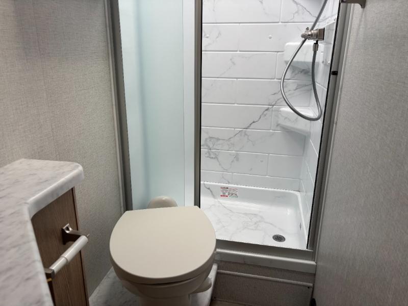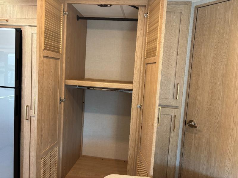 You will feel right at home traveling in this motorhome! After a long day being on the road, you can freshen up in the rear corner bathroom with the 30" x 36" shower that has a skylight above for more head space and natural lighting, plus robe hooks for added convenience. There is a linen closet to store your items, a pantry for snacks, and a refrigerator for your perishables. The 71" Dream Dinette is not only great for enjoying meals and playing card games, but also for transforming into an extra sleeping space. Speaking of sleeping, you also have a 72" x 74" king bed slide to lay your head on and a 52" x 96" bunk over cab!