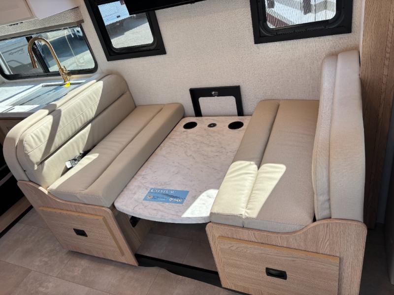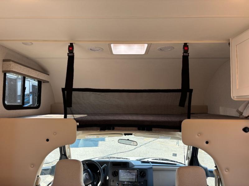 Experience a smooth ride to each destination with the Thor Motor Coach Chateau Class C gas motorhomes! There is a Ford E-Series chassis and each model includes an 8,000 lb. trailer hitch to bring the family car along. They are constructed with a welded tubular aluminum roof, sidewall cage construction, vacu-bond laminated roof, walls, and floor with block foam insulation to keep the heat and air conditioning inside. The slick fiberglass exterior with graphics package and black framed windows are sure to turn heads down the highway too. Inside, you'll be met with residential vinyl flooring, premium window privacy shades, a power bath vent, and pressed laminate kitchen countertops. There is even a tankless water heater for endless hot showers, a 4.0 kw dual gas/LP generator to keep you going, and a 100-watt solar charging system for off-grid capabilities!