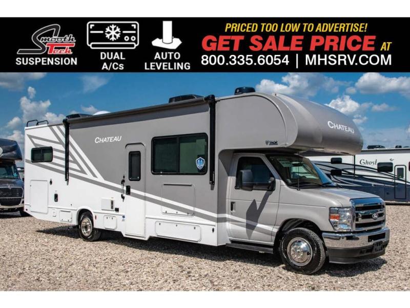 MSRP $176,764. The New 2026 Thor Motor Coach Chateau® Class C RV 31EV "Victory Series" is approximately 32 feet 8 inches in length featuring the new Ford® chassis with a 7.3L V8 engine and SmoothTECH Suspension. New features for the Chateau include a new dash stereo, all new exterior designs, new flooring, decorative kitchen glass inserts, new valance & headboards, LED taillights and much more. Options include the auto leveling jacks, heated remote exterior mirrors with side view cameras, leatherette driver and passenger captains chairs, cabover child safety net, exterior entertainment center and partial paint. The Chateau RV has an incredible list of standard features including power windows and locks, power patio awning with integrated LED lighting, roof ladder, in-dash media center AM/FM & Bluetooth, power vent in bath, skylight above shower, Onan generator, cab A/C and so much more. Shop hundreds of class C gas RVs at 1 location! Choose from Fleetwood Altitude - Gulf Stream BT Cruiser - Thor Chateau - Four Winds - Geneva and Quantum - Entegra Coach Odyssey Odyssey SE and Esteem - East to West Entrada - Forest River Forester - Forester LE - Nexus Phantom - Viper and much more. We also sell quality pre-owned models such as Jayco Greyhawk – Redhawk - Redhawk SE - Thor Magnitude - Winnebago Spirit - and Minnie Winnie - Coachmen Freelander and Leprechaun - Forest River Sunseeker Classic - Sunseeker LE – Solera - Holiday Rambler Incline and much more. Visit MHSRV.com for our complete line-up and the sale prices that have made us the #1 volume selling motor home dealership in the world 12 years in a row! For additional details on this unit and our entire inventory including brochures, window sticker, videos, photos, reviews & testimonials as well as additional information about Motor Home Specialist and our manufacturers please visit us at MHSRV.com or call 800-335-6054. At Motor Home Specialist, we DO NOT charge any prep or orientation fees like you will find at other dealerships. All sale prices include a 200-point inspection, interior & exterior wash, detail service and a fully automated high-pressure rain booth test and coach wash that is a standout service unlike that of any other in the industry. You will also receive a thorough coach orientation with an MHSRV technician, a night stay in our delivery park featuring landscaped and covered pads with full hook-ups and much more! Read Thousands upon Thousands of 5-Star Reviews at MHSRV.com and See What They Had to Say About Their Experience at Motor Home Specialist. WHY PAY MORE? WHY SETTLE FOR LESS?