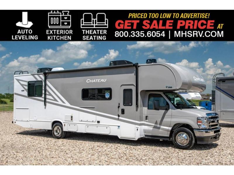 MSRP $173,764. The new 2026 Thor Motor Coach Chateau Class C RV 31MV is approximately 32 feet 7 inches in length featuring the new Ford chassis with a 7.3L V8 engine. This beautiful RV features the SmoothTECH Ride Suspension System by Mor-Ryde, touchscreen dash radio with Apple Car Play and back-up monitor, a 3 burner gas cooktop with oven, large stainless steel sink, shower with glass door, and tankless water heater. Additional options include the partial paint, exterior pull-out kitchen w/griddle and 12V cooler, auto leveling jacks w/touch pad controls, heated remote exterior mirrors w/side cameras, leatherette driver/pass chairs, cabover child safety net and exterior TV on swivel bracket w/Bluetooth soundbar & radio. The Chateau RV has an incredible list of standard features including keyless entry system, sun visor, power window & door locks, child safety tether, cab over bunk and so much more. Shop hundreds of class C gas RVs at 1 location! Choose from Fleetwood Altitude - Gulf Stream BT Cruiser - Thor Chateau - Four Winds - Geneva and Quantum - Entegra Coach Odyssey Odyssey SE and Esteem - East to West Entrada - Forest River Forester - Forester LE - Nexus Phantom - Viper and much more. We also sell quality pre-owned models such as Jayco Greyhawk – Redhawk - Redhawk SE - Thor Magnitude - Winnebago Spirit - and Minnie Winnie - Coachmen Freelander and Leprechaun - Forest River Sunseeker Classic - Sunseeker LE – Solera - Holiday Rambler Incline and much more. Visit MHSRV.com for our complete line-up and the sale prices that have made us the #1 volume selling motor home dealership in the world 12 years in a row! For additional details on this unit and our entire inventory including brochures, window sticker, videos, photos, reviews & testimonials as well as additional information about Motor Home Specialist and our manufacturers please visit us at MHSRV.com or call 800-335-6054. At Motor Home Specialist, we DO NOT charge any prep or orientation fees like you will find at other dealerships. All sale prices include a 200-point inspection, interior & exterior wash, detail service and a fully automated high-pressure rain booth test and coach wash that is a standout service unlike that of any other in the industry. You will also receive a thorough coach orientation with an MHSRV technician, a night stay in our delivery park featuring landscaped and covered pads with full hook-ups and much more! Read Thousands upon Thousands of 5-Star Reviews at MHSRV.com and See What They Had to Say About Their Experience at Motor Home Specialist. WHY PAY MORE? WHY SETTLE FOR LESS?