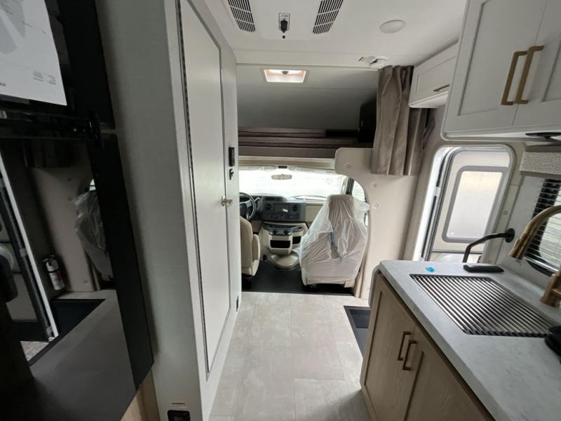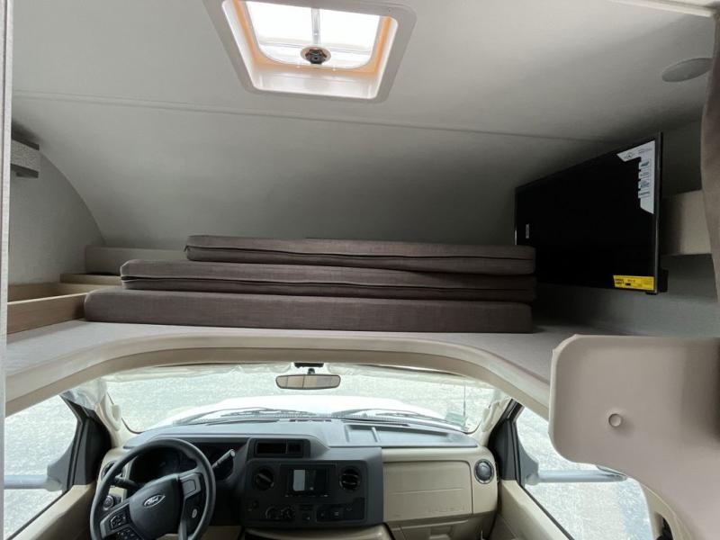 With any Chateau ESpec Essential Class C gas motorhome by Thor Motor Coach, you will find convenient amenities, a modern interior, and a reliable Ford E-Series chassis, with an optional Chevy chassis on select models to power your adventures. There is welded tubular aluminum roof and sidewall cage construction, a one-piece fiberglass front cap, and premium one-piece Crossflex exterior roofing for added strength. Residential vinyl flooring will be easy to keep clean, and you'll love the sleek look of the Coastline Grey flat panel cabinet doors. These motorhomes also include a 4.0 kW gas generator and a 30-amp shoreline power cord to keep you going, along with a tankless water heater and 13,500 roof front A/C to ensure your comfort!