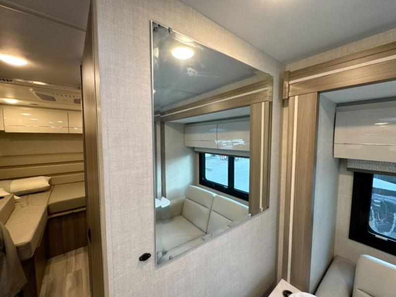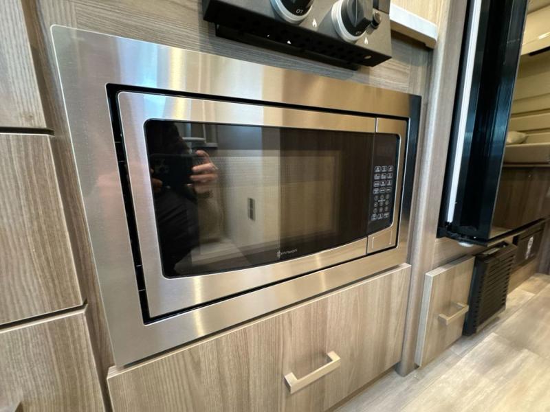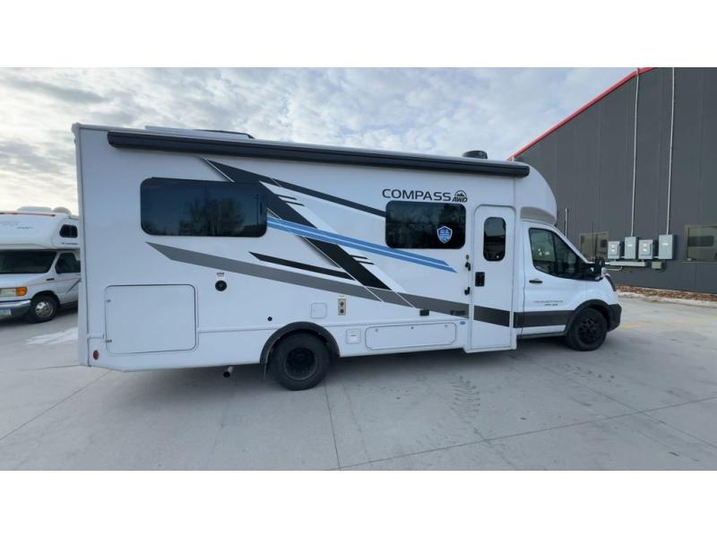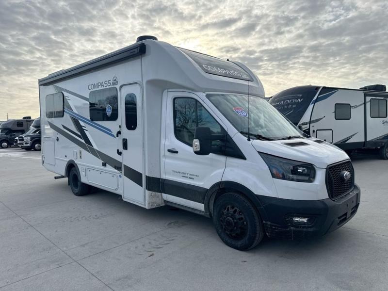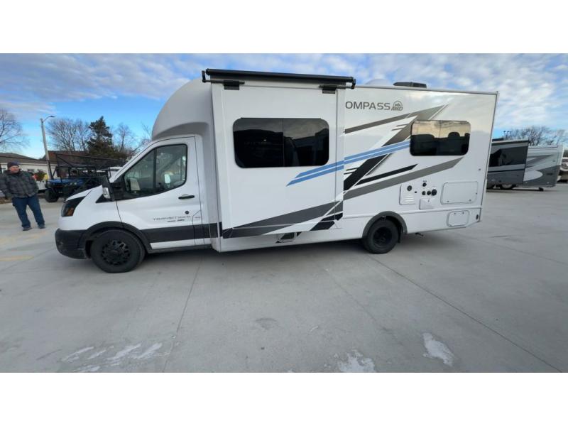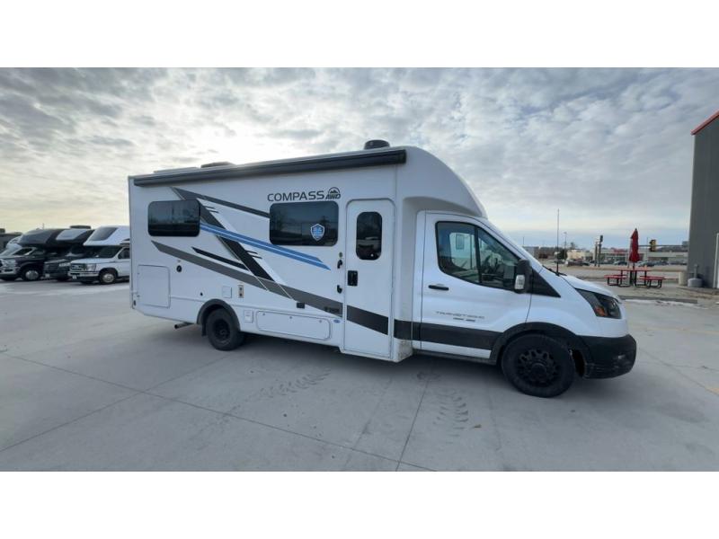 The Thor Motor Coach Compass AWD Class B+ gas motorhome is small but mighty! It includes all-wheel drive, and it is built upon a Ford Transit chassis, 3.5L V6 Eco Boost turbo gas engine, and Ford ten-speed automatic overdrive transmission. The Ford safety features provide excellent care while driving, and you can stay connected to your Compass AWD with the FordPass Connect. The power patio awning with LED lights can be moved out into position with just one touch on your cell phone thanks to the Rapid Camp+ multiplex control system. You will have a 100W solar panel with controller, a 15,000 BTU air conditioner, a Winegard ConnecT 2.0 Wi-Fi/4G/TV antenna, and a tankless water heater as some of the top electrical and plumbing features.