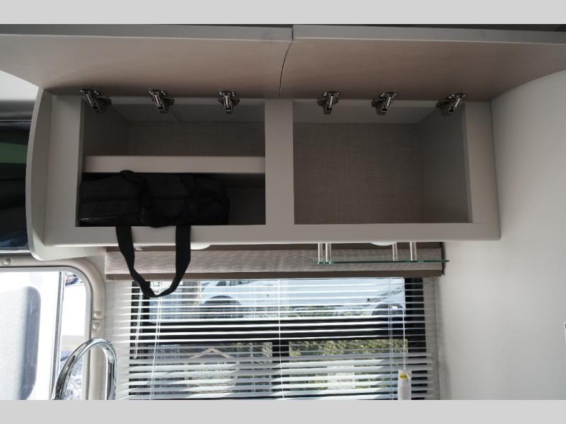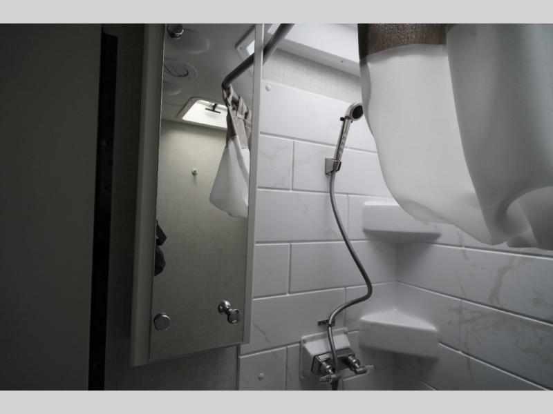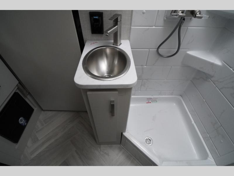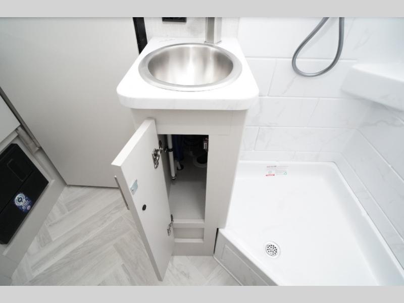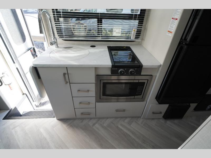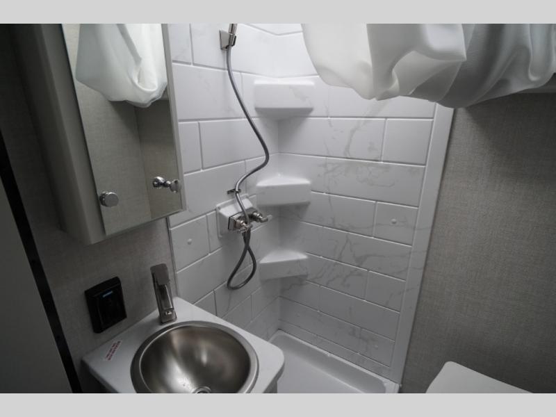 The perfect coach for two whether you are a couple or not! This Compass AWD model features a set of twin beds that can easily convert to a king bed if you like. Enjoy the added space thanks to a slide out jack-knife sofa. You will appreciate the kitchen amenities for light meals and snacks while on the road, plus the onboard bath offers a 27" x 27" radius shower, toilet, and sink which is convenient as well. There are also two 32" Smart TVs in this coach, one over the side entry opposite the seating in front, and one back in the sleeping area at the foot of the roadside twin bed. A built-in skylight offers the ability to stargaze in the front of the coach on a clear night.