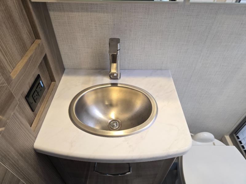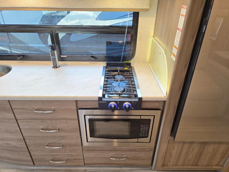 You can go just about anywhere your heart desires in this spacious coach for five. The cab-over bunk will be a big plus with the little ones, and you'll enjoy the Murphy bed when the 67" sofa isn't being used. Whip up a meal on the two burner gas cooktop, or use the convection microwave with an air fryer, and the 70" Dream Dinette will provide a space to dine at. This model includes a full rear bath with a shower skylight, a power bath vent to keep everything fresh, and a linen/closet for clean towels. Start exploring today in this Delano Sprinter coach!