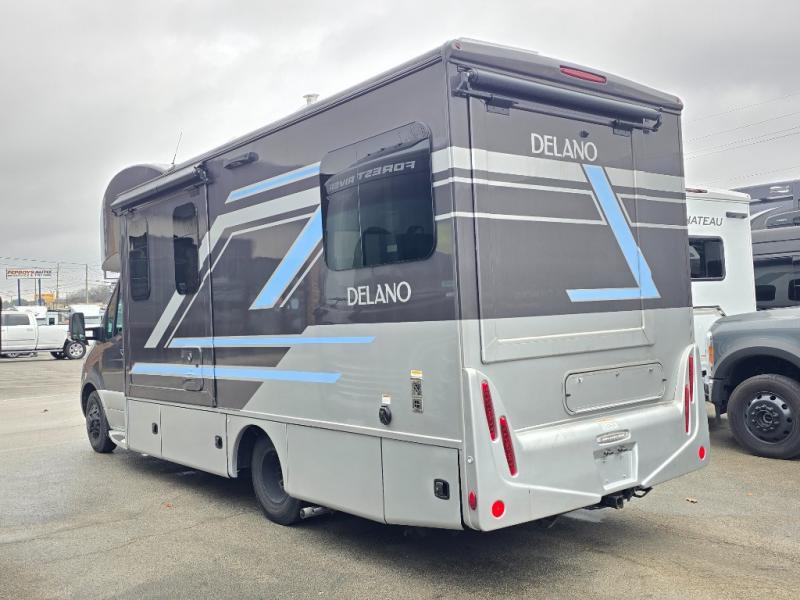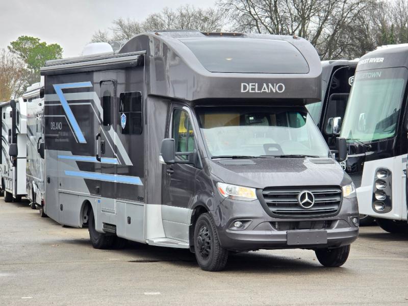 Luxury comes standard in the Delano Sprinter Class C diesel motorhomes by Thor Motor Coach. You will find it so easy to maneuver the road with the Mercedes-Benz Safety package that includes features such as active braking assist and distance regulator distronic plus that will help keep a safe distance from vehicles in front of you, and you can add the optional blind spot detection system for even more convenience. The frameless windows and the full-body paint package with gel coated sidewalls is sure to be eye-catching, plus there is invisible front paint protection for added defense against the elements. Each model includes the Rapid Camp+ multiplex wiring control system that will make set-up easier than ever, a Winegard ConnecT 2.0 WiFi/4G/TV antenna to keep you connected to the outside world, and premium one-piece Crossflex roofing material that is ultra durable. The Delano Sprinter also includes many interior comforts, like the easy-to-clean residential vinyl flooring, the Euro-style cabinetry, and the Leatherette furniture!