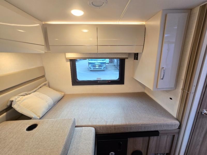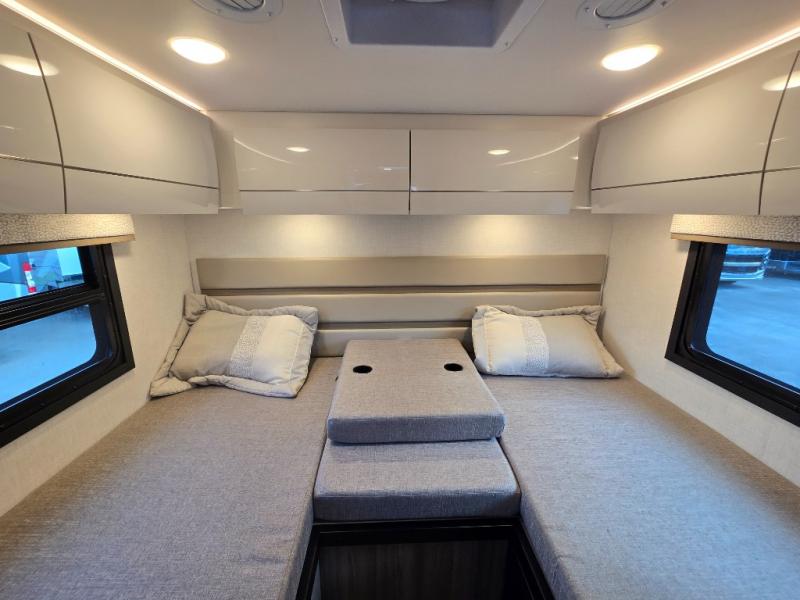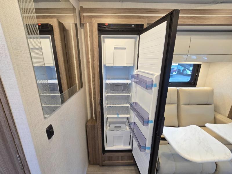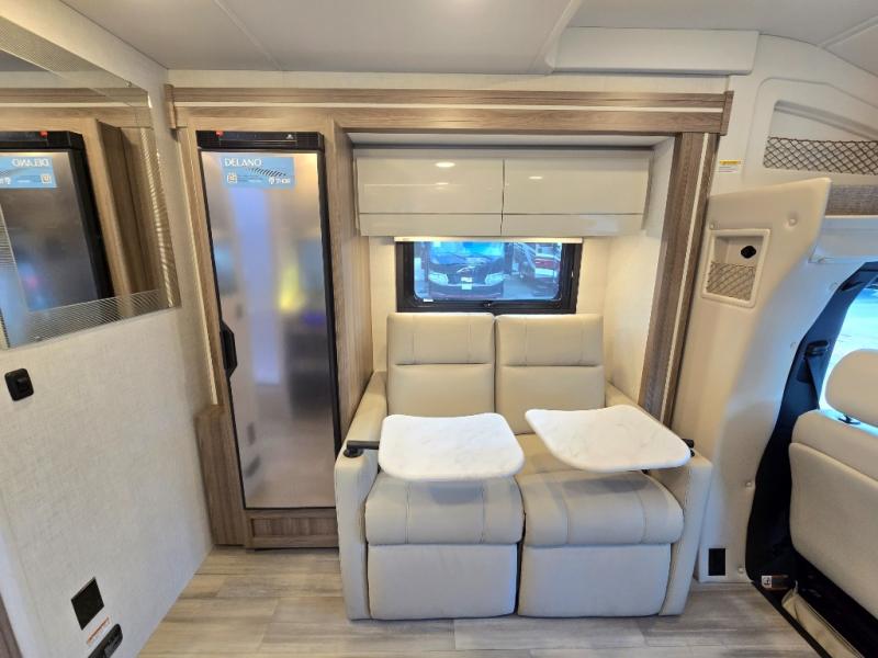 Luxury comes standard in the Delano Sprinter Class C diesel motorhomes by Thor Motor Coach. You will find it so easy to maneuver the road with the Mercedes-Benz Safety package that includes features such as active braking assist and distance regulator distronic plus that will help keep a safe distance from vehicles in front of you, and you can add the optional blind spot detection system for even more convenience. The frameless windows and the full-body paint package with gel coated sidewalls is sure to be eye-catching, plus there is invisible front paint protection for added defense against the elements. Each model includes the Rapid Camp+ multiplex wiring control system that will make set-up easier than ever, a Winegard ConnecT 2.0 WiFi/4G/TV antenna to keep you connected to the outside world, and premium one-piece Crossflex roofing material that is ultra durable. The Delano Sprinter also includes many interior comforts, like the easy-to-clean residential vinyl flooring, the Euro-style cabinetry, and the Leatherette furniture!